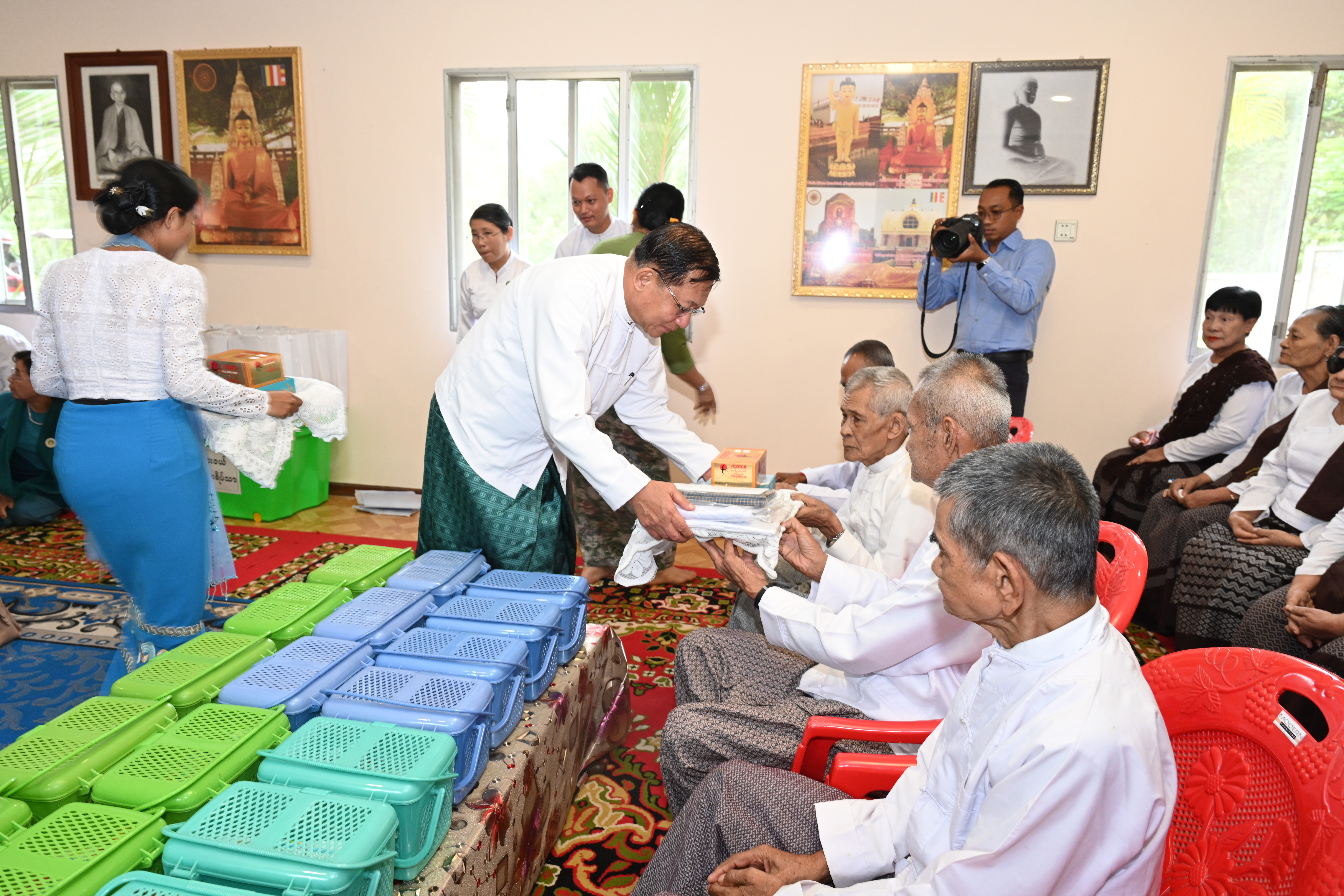 ယင်းနောက် ပြည်ထောင်စုသမ္မတမြန်မာနိုင်ငံတော်ယာယီသမ္မတ နိုင်ငံတော်လုံခြုံရေးနှင့်အေးချမ်းသာယာရေးကော်မရှင်ဥက္ကဋ္ဌနှင့် ဇနီးတို့က ဘက်စုံအလှူငွေများ ပေးအပ်လှူဒါန်းရာ ဂေါပကအဖွဲ့ဝင်များက လက်ခံရယူပြီး ဂုဏ်ပြုမှတ်တမ်းလွှာ ပြန်လည်ပေးအပ်သည်။