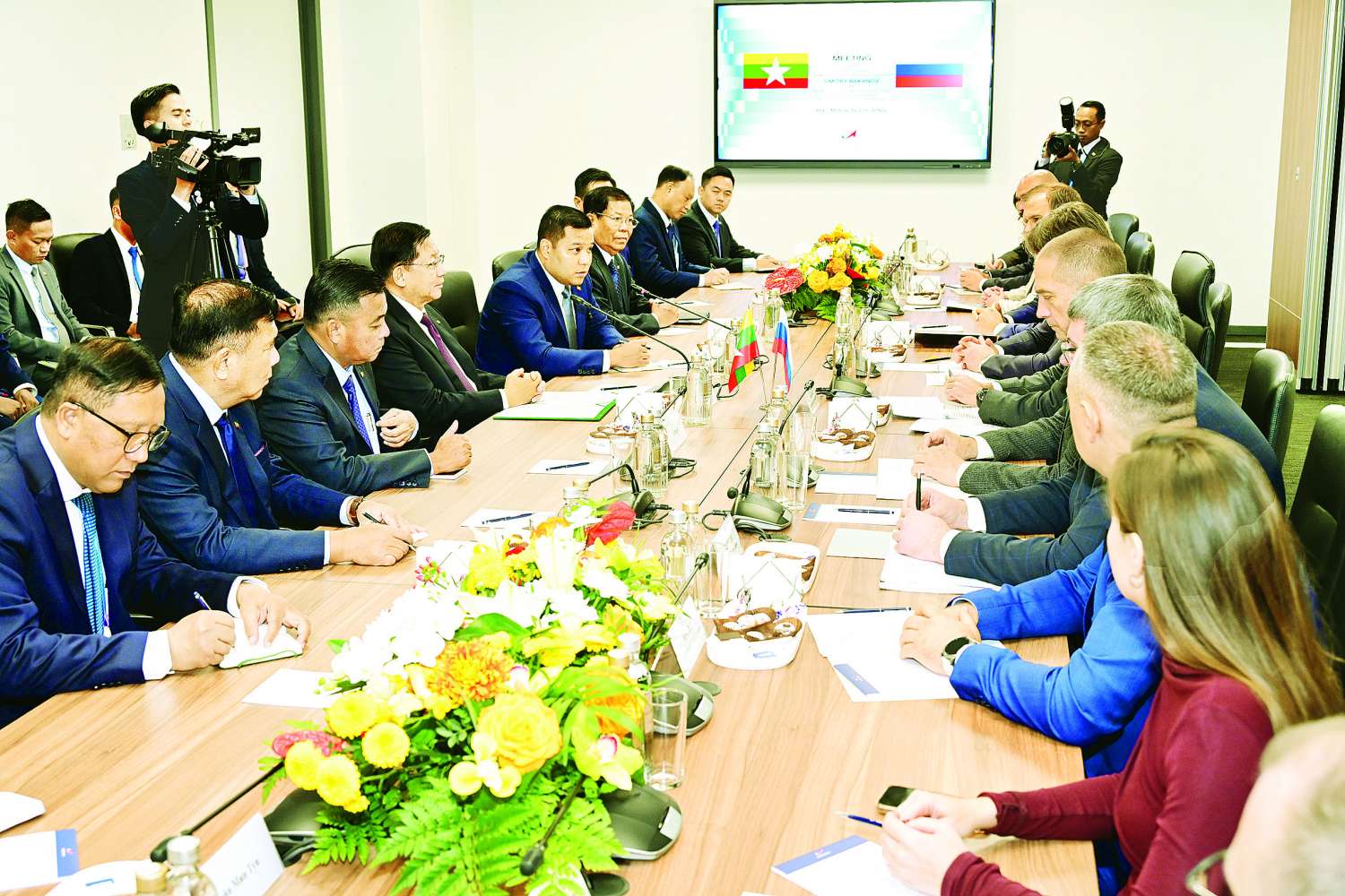 ထို့နောက် ပြည်ထောင်စုသမ္မတမြန်မာနိုင်ငံတော်ယာယီသမ္မတ နိုင်ငံတော်လုံခြုံရေးနှင့်အေးချမ်းသာယာရေးကော်မရှင်ဥက္ကဋ္ဌနှင့် ရုရှားဖက်ဒရေးရှင်းနိုင်ငံ State Space Corporation “Roscosmos” ညွှန်ကြားရေးမှူးချုပ်တို့သည် အစည်းအဝေးခန်းမအတွင်း၌ တွေ့ဆုံဆွေးနွေးသည်။