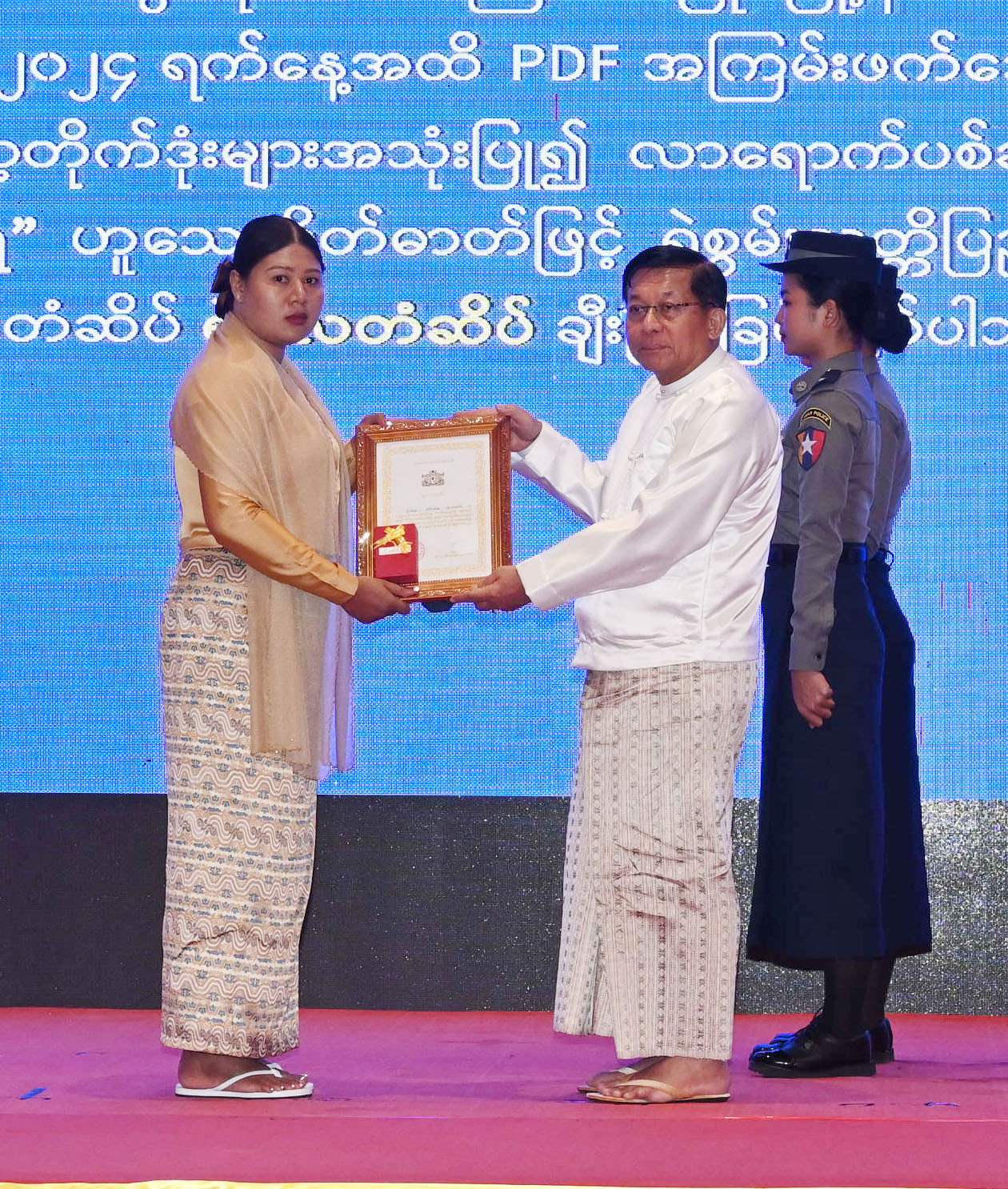 ၂၀၂၄ ခုနှစ် အောက်တိုဘာလ ၂ ရက် နေ့မှ ယနေ့ ၂၀၂၅ ခုနှစ် ဩဂုတ်လ ၃၁ ရက်နေ့အထိ ရဲသူရတံဆိပ် ငါးဦး၊ ရဲဗလ တံဆိပ် ၂၀၊  သူရဲကောင်းမှတ်တမ်းဝင်တံဆိပ်တစ်ဦး၊  ရဲသူရိန်တံဆိပ် ၁၀ ဦး၊  ရဲကျော်စွာတံဆိပ် နှစ်ဦး အပါအဝင် စုစုပေါင်း ၄၅၈၇ ဦးတို့ကို ဂုဏ်ပြုချီးမြှင့်ပေးခဲ့ကြောင်း။