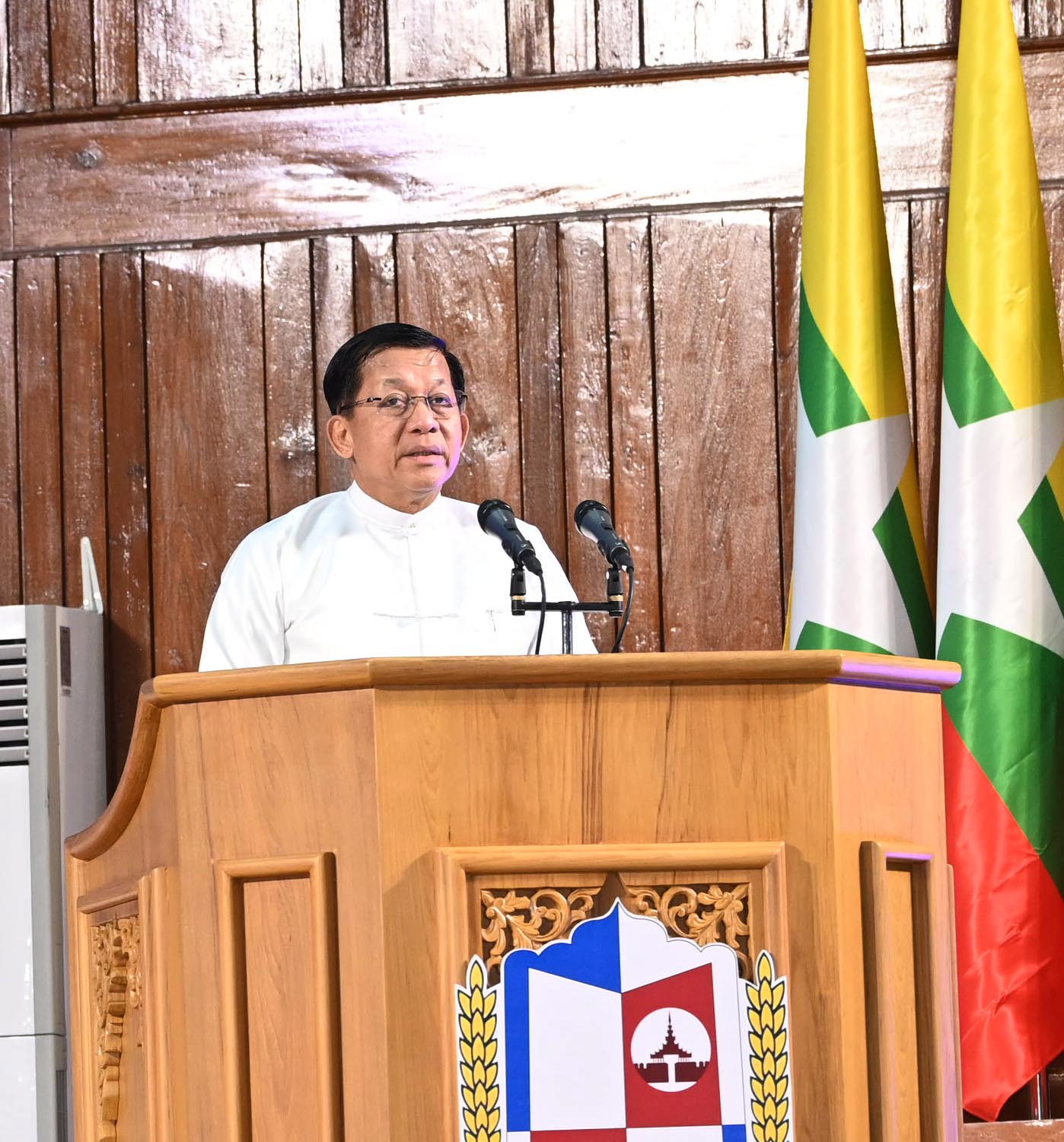 ပြည်ထောင်စုသမ္မတမြန်မာနိုင်ငံတော်ယာယီသမ္မတ နိုင်ငံတော်လုံခြုံရေးနှင့်အေးချမ်းသာယာရေးကော်မရှင်ဥက္ကဋ္ဌ ဗိုလ်ချုပ်မှူးကြီး မင်းအောင်လှိုင် မန္တလေးတက္ကသိုလ် နှစ် (၁၀၀)ပြည့် ရာပြည့်သဘင် အထိမ်းအမှတ် ဖွင့်ပွဲအခမ်းအနားသို့ တက်ရောက်ချီးမြှင့်
