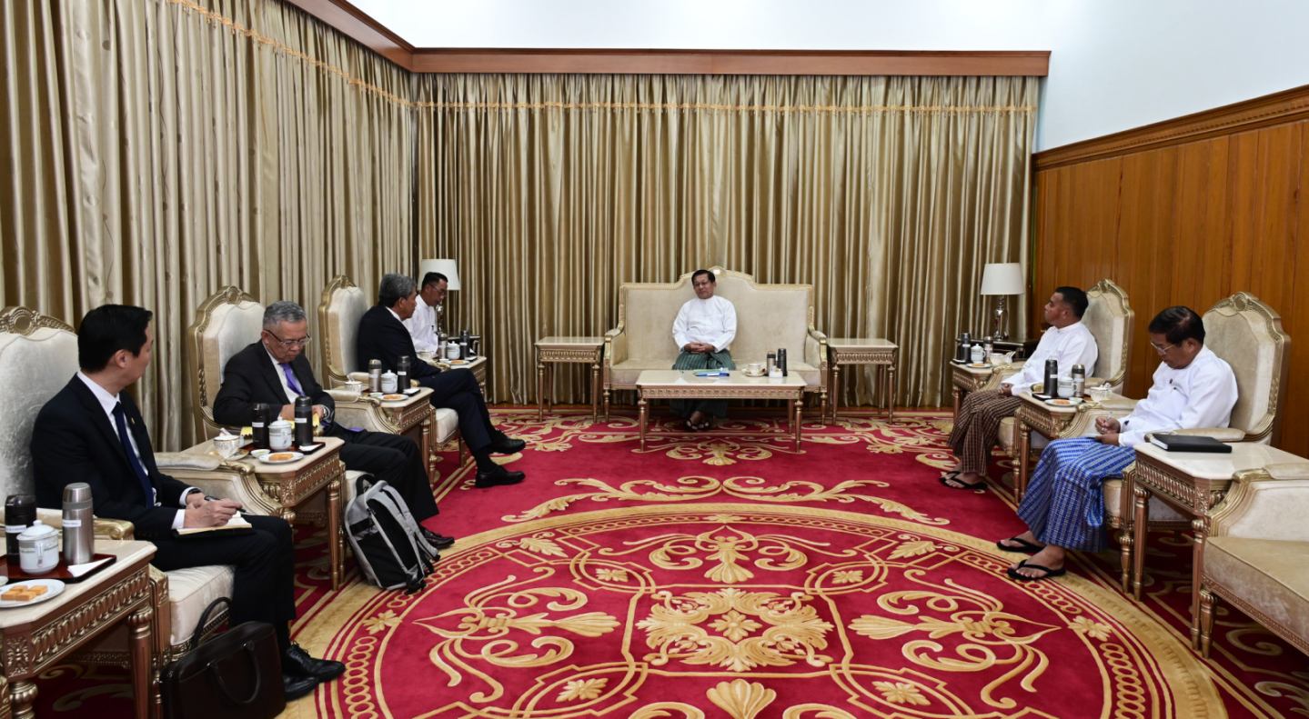 ပြည်ထောင်စုသမ္မတမြန်မာနိုင်ငံတော်ယာယီသမ္မတ နိုင်ငံတော်လုံခြုံရေးနှင့်အေးချမ်းသာယာရေးကော်မရှင်ဥက္ကဋ္ဌ ဗိုလ်ချုပ်မှူးကြီး မင်းအောင်လှိုင် မလေးရှားနိုင်ငံ နိုင်ငံခြားရေးဝန်ကြီးအား လက်ခံတွေ့ဆုံ