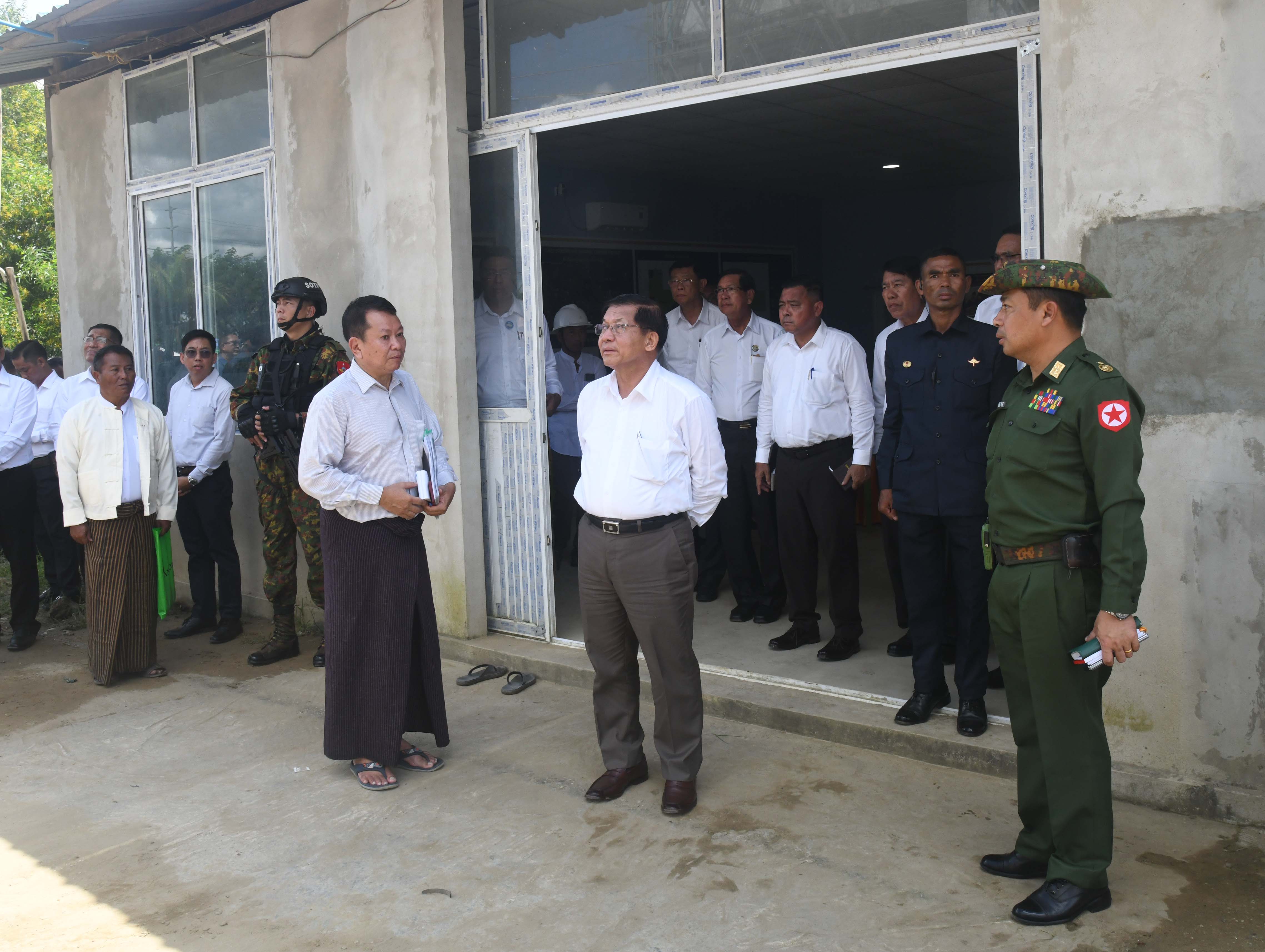 ပြည်ထောင်စုသမ္မတမြန်မာနိုင်ငံတော်ယာယီသမ္မတ နိုင်ငံတော်လုံခြုံရေးနှင့်အေးချမ်းသာယာရေးကော်မရှင်ဥက္ကဋ္ဌ ဗိုလ်ချုပ်မှူးကြီး မင်းအောင်လှိုင် မြန်မာ့သားကောင်းအဆင့်မြင့်စစ်မှုထမ်းဟောင်းအိမ်ရာ(လေးထောင့်ကန်)နှင့် Shopping Complex တည်ဆောက်ရေးလုပ်ငန်းခွင်တို့သို့ သွားရောက်ကြည့်ရှုစစ်ဆေး