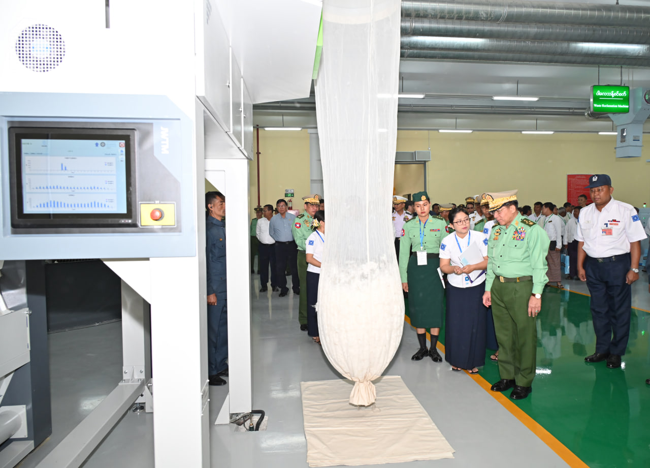 ၎င်းနောက် နိုင်ငံတော်စီမံအုပ်ချုပ်ရေးကောင်စီဥက္ကဋ္ဌ တပ်မတော်ကာကွယ်ရေးဦးစီးချုပ်နှင့် အဖွဲ့ဝင်များသည် ဝါစိုက်ပျိုးထုတ်လုပ်မှုနှင့် ချည်မျှင်ထုတ်လုပ်မှု အဆင့်ဆင့် ပြကွက်များနှင့် တပ်မတော်ချည်မျှင်နှင့်အထည်စက်ရုံ (မိတ္ထီလာ)၊ ၂/၈၀ ချည်ချော စက်ရုံခွဲမှ ထုတ်လုပ်ထားသည့် ချည်ထည်ပစ္စည်းများကို လှည့်လည်ကြည့်ရှုကြသည်။