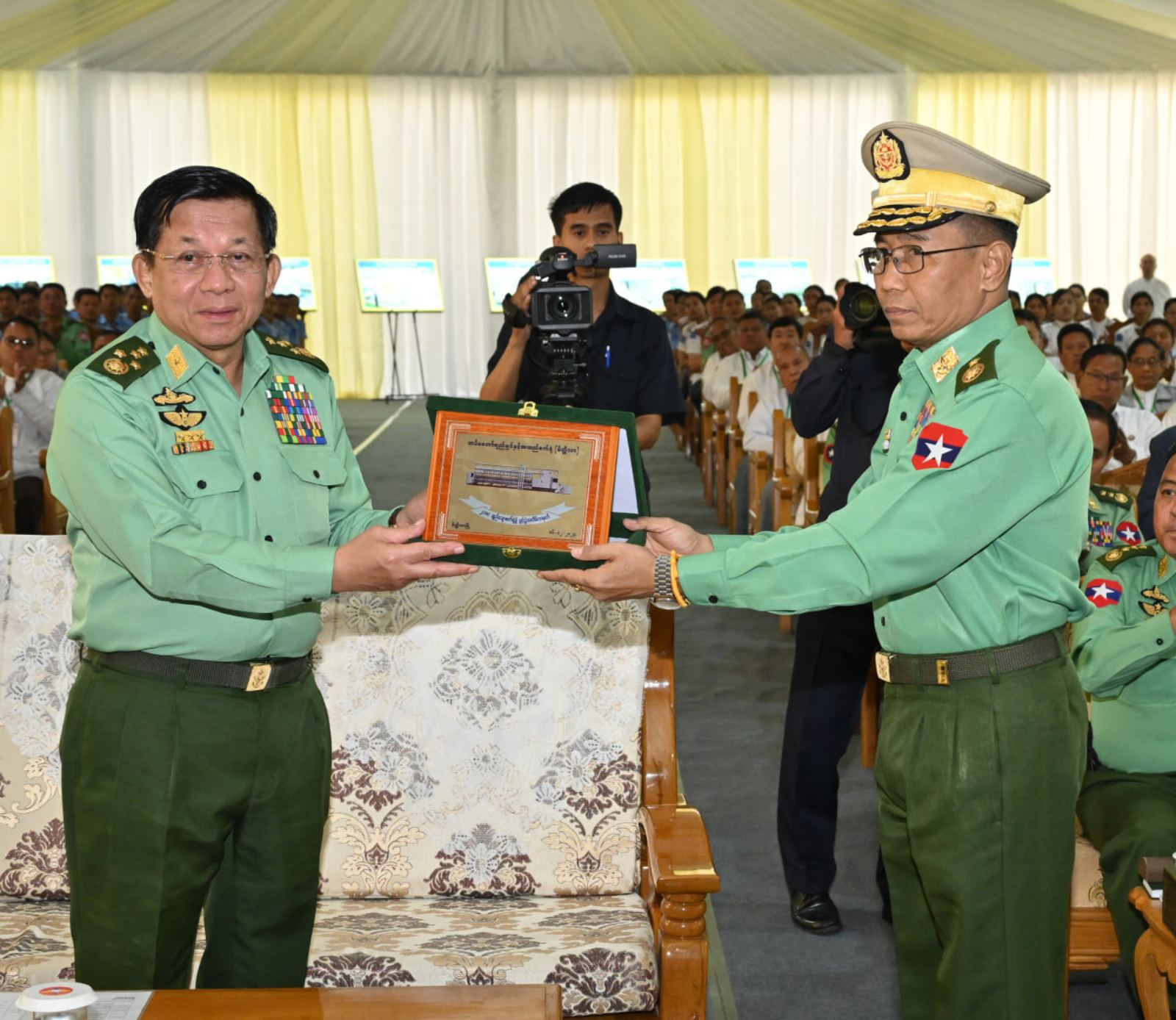 ယင်းနောက် နိုင်ငံတော်စီမံအုပ်ချုပ်ရေးကောင်စီဥက္ကဋ္ဌ တပ်မတော်ကာကွယ်ရေးဦးစီးချုပ်ထံ စစ်လက်နက် ပစ္စည်းညွှန်ကြားရေးမှူးရုံး ညွှန်ကြားရေးမှူးက ဖွင့်ပွဲအထိမ်းအမှတ်လက်ဆောင်အား ဂါရဝပြုပေးအပ်သည်။