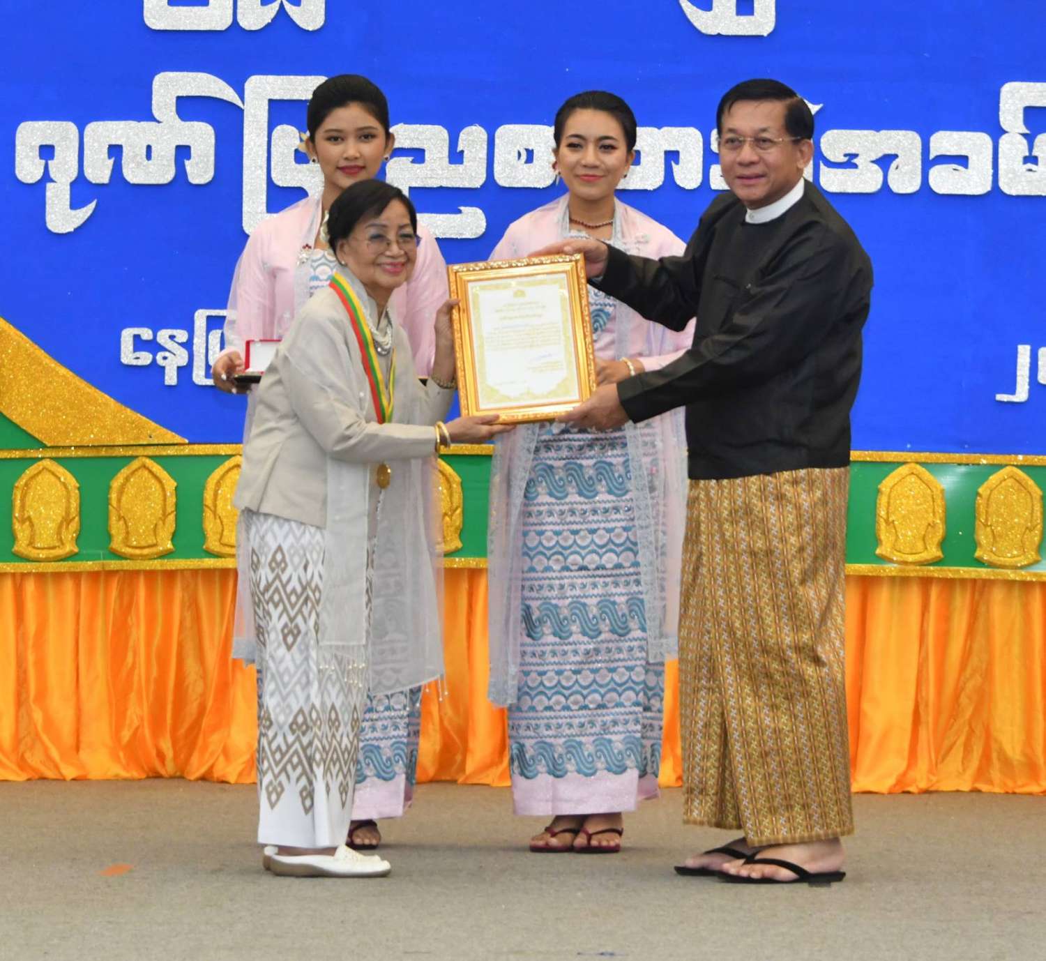 (၂၅)ကြိမ်မြောက် ငွေရတုအထိမ်းအမှတ် မြန်မာ့ရိုးရာယဉ်ကျေးမှု အဆို၊ အက၊ အရေး၊ အတီးပြိုင်ပွဲ ဂုဏ်ပြုမှတ်တမ်းလွှာပေးအပ်ပွဲနှင့် ဂုဏ်ပြုညစာစားပွဲ အခမ်းအနားကျင်းပ၊ နိုင်ငံတော်စီမံအုပ်ချုပ်ရေးကောင်စီဥက္ကဋ္ဌ နိုင်ငံတော်ဝန်ကြီးချုပ် ဗိုလ်ချုပ်မှူးကြီးမင်းအောင်လှိုင် တက်ရောက်ချီးမြှင့်