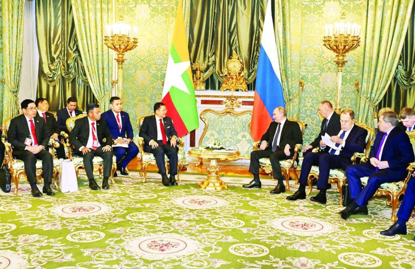 နိုင်ငံတော်စီမံအုပ်ချုပ်ရေးကောင်စီဥက္ကဋ္ဌ နိုင်ငံတော်ဝန်ကြီးချုပ် ဗိုလ်ချုပ်မှူးကြီး မင်းအောင်လှိုင် ရုရှားဖက်ဒရေးရှင်းနိုင်ငံသမ္မတ H.E. Vladimir Vladimirovich Putin နှင့် သီးသန့်တွေ့ဆုံဆွေးနွေး