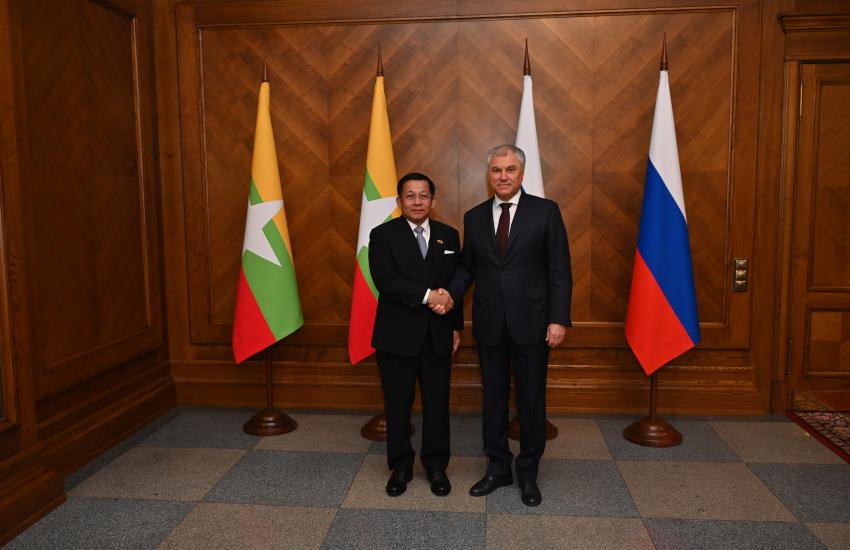 နိုင်ငံတော်စီမံအုပ်ချုပ်ရေးကောင်စီဥက္ကဋ္ဌ၊ နိုင်ငံတော်ဝန်ကြီးချုပ် ဗိုလ်ချုပ်မှူးကြီး မင်းအောင်လှိုင် ရုရှားဖက်ဒရေးရှင်းနိုင်ငံ ဒူးမားလွှတ်တော်ဥက္ကဋ္ဌနှင့် တွေ့ဆုံဆွေးနွေး