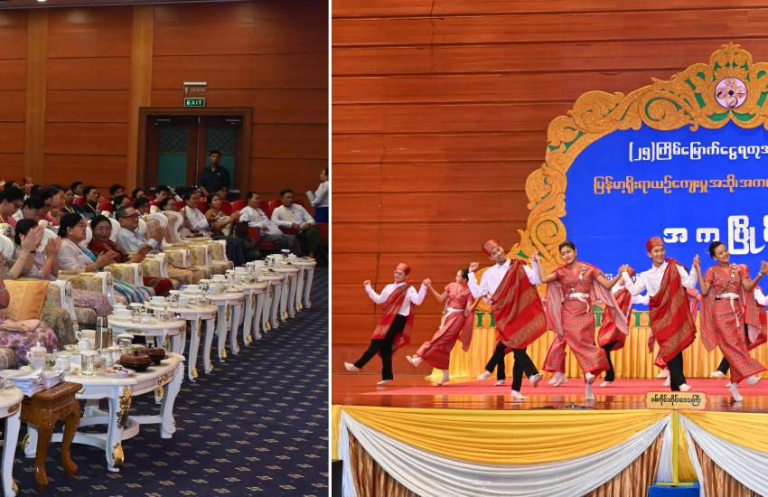 နိုင်ငံတော်စီမံအုပ်ချုပ်ရေးကောင်စီ ဥက္ကဋ္ဌ နိုင်ငံတော်ဝန်ကြီးချုပ် ဗိုလ်ချုပ်မှူးကြီး မင်းအောင်လှိုင်နှင့် ဇနီး ဒေါ်ကြူကြူလှ (၂၅)ကြိမ်မြောက် ငွေရတုအထိမ်းအမှတ် မြန်မာ့ရိုးရာယဉ်ကျေးမှု အဆို ၊ အက၊ အရေး၊ အတီးပြိုင်ပွဲ ကျင်းပနေမှုများကို တက်ရောက်ကြည့်ရှုအားပေး