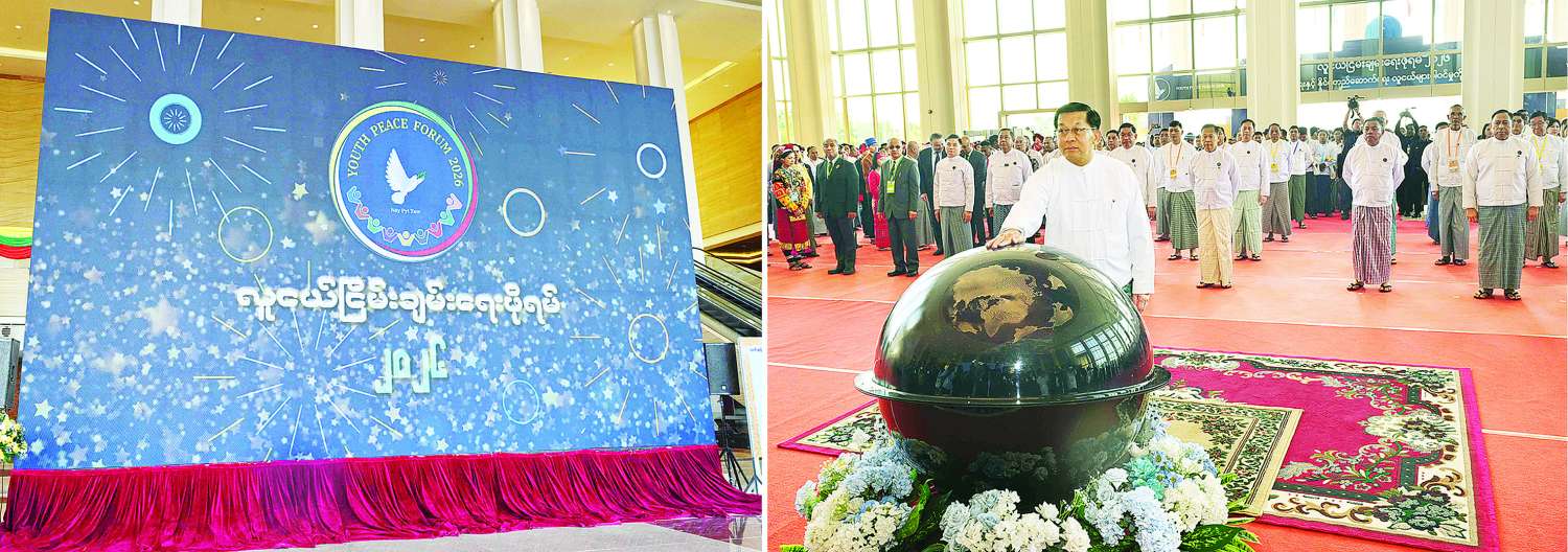 “လူငယ်ငြိမ်းချမ်းရေးဖိုရမ် ၂ဝ၂၆” ဖွင့်ပွဲအခမ်းအနားသို့ နိုင်ငံတော်ယာယီသမ္မတ နိုင်ငံတော်လုံခြုံရေးနှင့်အေးချမ်းသာယာရေးကော်မရှင်ဥက္ကဋ္ဌ အမျိုးသားစည်းလုံးညီညွတ်ရေးနှင့်ငြိမ်းချမ်းရေးဖော်ဆောင်မှုဗဟိုကော်မတီဥက္ကဋ္ဌ ဗိုလ်ချုပ်မှူးကြီး မင်းအောင်လှိုင် တက်ရောက်ဖွင့်လှစ်ပြီး အဖွင့်အမှာစကားပြောကြား