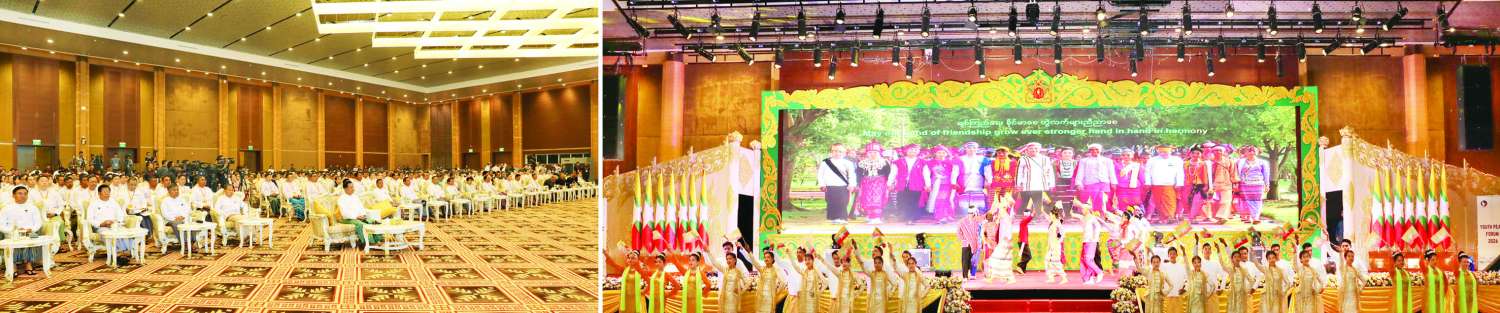 ထို့အပြင် ငြိမ်းချမ်းရေးနှင့်ဖွံ့ဖြိုးတိုးတက်ရေးအတွက် မျိုးဆက်သစ်လူငယ်များ အခွင့်အရေးအပြည့်အဝရရှိနိုင်ပြီး လွတ်လပ် လုံခြုံစွာ ဖွံ့ဖြိုးသည့်စနစ်ကိုဖော်ဆောင်နိုင်ရန် လူငယ်များအတွက် ဘက်စုံဖွံ့ဖြိုးတိုးတက်ရေး ကြိုးပမ်းဆောင်ရွက်လျက်ရှိကြောင်း၊ နိုင်ငံတော်အနေဖြင့် လူငယ်များကို ကဏ္ဍအလိုက် စနစ်တကျဖွံ့ဖြိုးတိုးတက်စေရေးအတွက် အထောက်အကူပြုမည့်လုပ်ငန်းစဉ်များကို ဆက်လက်အကောင်အထည်ဖော် ဆောင်ရွက်သွားမည်ဖြစ်ကြောင်း၊ ထို့အပြင် ဗလငါးတန်နှင့်ပြည့်စုံသည့် လူငယ်များ ပေါ်ထွန်းလာရေးအတွက် အစီအစဉ်များ ချမှတ်ဆောင်ရွက်လျက်ရှိရာ လူမှုစီးပွားဘဝ ဖွံ့ဖြိုးတိုးတက်ရေးတွင် ပညာရေးဖွံ့ဖြိုးတိုးတက်မှုကဏ္ဍသည် အရေးကြီးသကဲ့သို့ ကျန်းမာကြံ့ခိုင်ရေးကလည်း ထပ်တူထပ်မျှအရေးကြီးသည့်အတွက် ကျန်းမာကြံ့ခိုင်သည့် လူ့အဖွဲ့အစည်း ဖြစ်ပေါ်စေရေး နိုင်ငံတော်က အလေးထား ဆောင်ရွက်လျက်ရှိကြောင်း၊ ပြည်သူများ ကျန်းမာကြံ့ခိုင်ခြင်းသည် တိုင်းပြည်ကို ကျန်းမာကြံ့ခိုင်စေမည်ဖြစ်ကြောင်း၊ အထူးသဖြင့် လူငယ်များအတွင်း ကျန်းမာကြံ့ခိုင်မှုနှင့် အားကစားစိတ်ဓာတ် ဖွံ့ဖြိုးလာစေရေးအတွက် တိုင်းရင်းသားပြည်သူများက နိုင်ငံတော်နှင့်အတူပူးပေါင်းပါဝင်ဆောင်ရွက်ပေးကြရန် တိုက်တွန်းမှာကြားလိုကြောင်း။