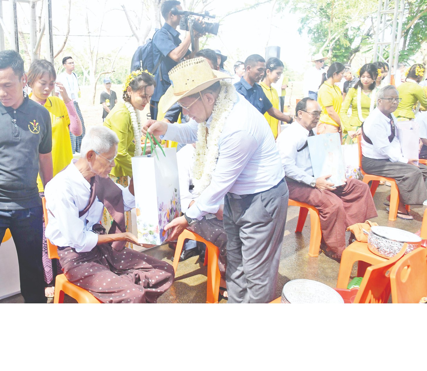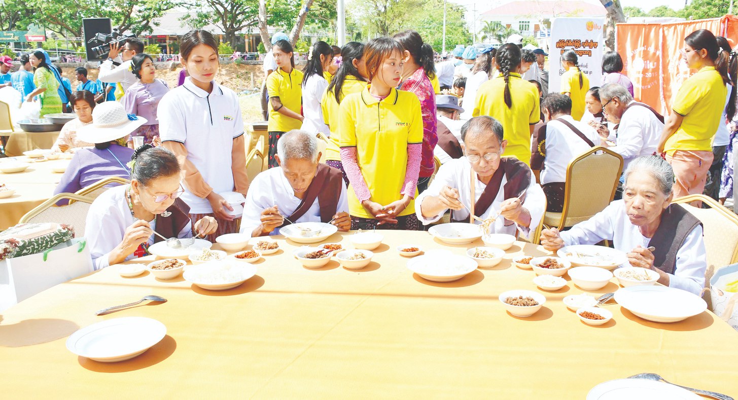 ထို့နောက် နိုင်ငံတော်စီမံအုပ်ချုပ်ရေးကောင်စီဥက္ကဋ္ဌ နိုင်ငံတော်ဝန်ကြီးချုပ်နှင့် ဇနီးတို့သည် သက်ကြီးရွယ်အို အဘိုးအဘွားများအား လက်ဆောင်ပစ္စည်းများပေးအပ်ပြီး မြန်မာ့ရိုးရာအစဉ်အလာနှင့်အညီ ခေါင်းလျှော်ပေးခြင်း၊ ခြေသည်း၊ လက်သည်းညှပ်ပေးခြင်းတို့ ပြုလုပ်ပေးနေမှုကို ကြည့်ရှုအားပေးသည်။