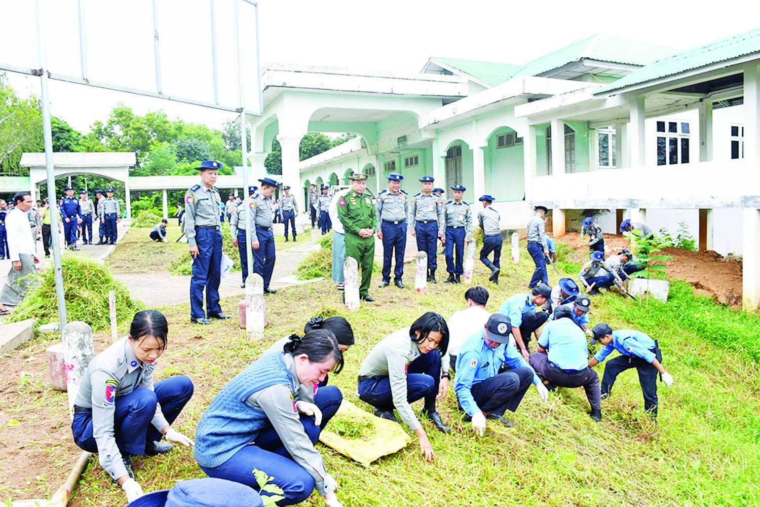မြန်မာနိုင်ငံရဲတပ်ဖွဲ့ဌာနချုပ်ရှိ ဌာနကြီးများနှင့် တပ်ဖွဲ့များမှ တပ်ဖွဲ့ဝင်နှင့် စာရေးဝန်ထမ်းနှင့်အတူ ဆေးရုံကြီးရှိ ဆရာဝန်၊ သူနာပြုများနှင့် ကျန်းမာရေးဝန်ထမ်းများက ပျော်ရွှင်စွာဖြင့် အတူတကွ စုပေါင်းသန့်ရှင်းရေး လုပ်အားပေးဆောင်ရွက်ခဲ့ကြကြောင်း သတင်းရရှိသည်။