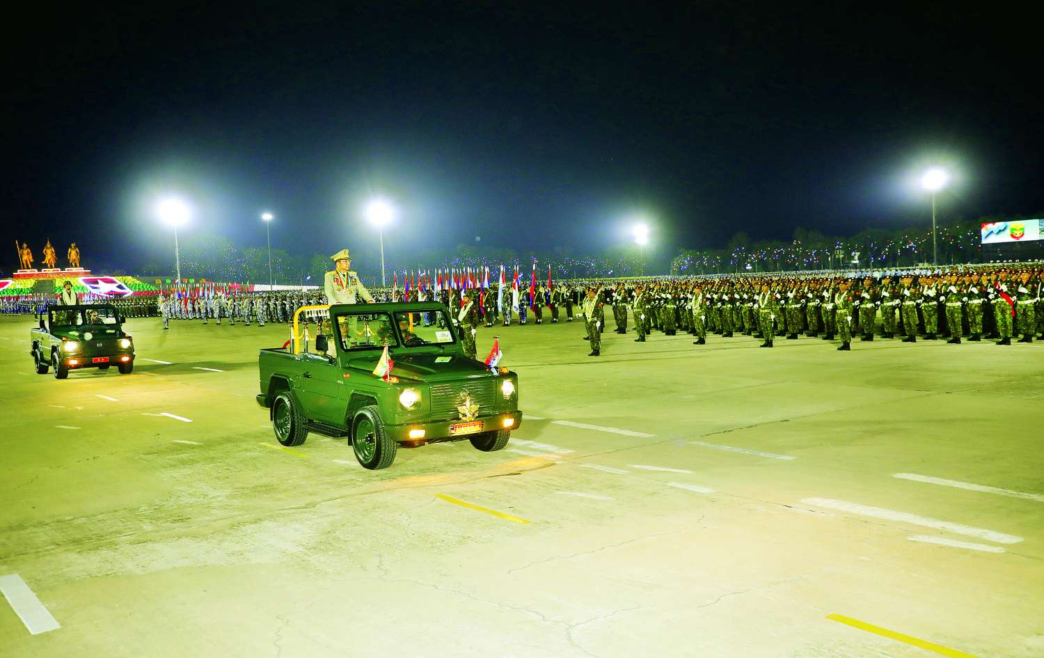 ယနေ့တွင် ကျရောက်သည့် နှစ်(၈၀)ပြည့် တပ်မတော်နေ့ စစ်ရေးပြအခမ်းအနားကို ယနေ့ညပိုင်းတွင် နေပြည်တော်စစ်ရေးပြကွင်း၌ ကျင်းပပြုလုပ်ရာ နိုင်ငံတော်စီမံအုပ်ချုပ်ရေးကောင်စီဥက္ကဋ္ဌ တပ်မတော်ကာကွယ်ရေးဦးစီးချုပ် ဗိုလ်ချုပ်မှူးကြီး သတိုးမဟာသရေစည်သူ သတိုးသီရိသုဓမ္မ မင်းအောင်လှိုင် တက်ရောက်မိန့်ခွန်းပြောကြားသည်။