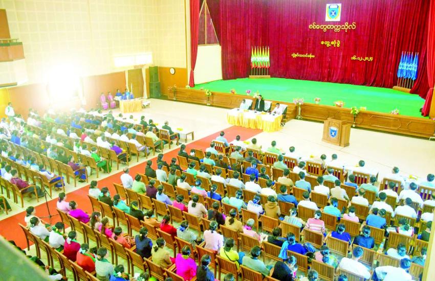 နိုင်ငံတော်စီမံအုပ်ချုပ်ရေးကောင်စီအဖွဲ့ဝင်များ ဦးဆောင်သောအဖွဲ့ စစ်တွေမြို့၌ ပြည်နယ်အဆင့် ဌာနဆိုင်ရာများနှင့်တွေ့ဆုံ