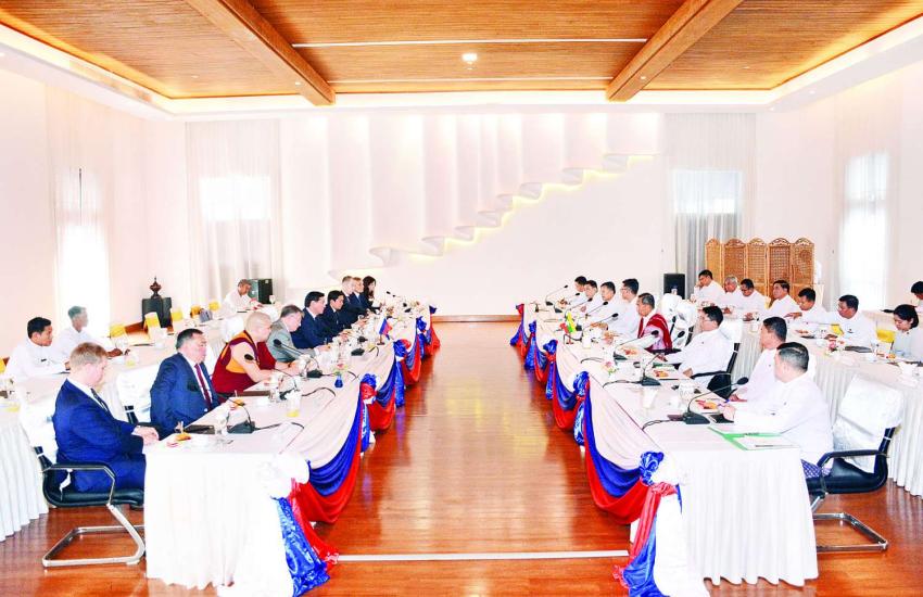 ရုရှားဖက်ဒရေးရှင်းနိုင်ငံ ကာလ်မီးကီယာပြည်နယ်အကြီးအကဲဦးဆောင်သော ကိုယ်စားလှယ်အဖွဲ့ နေပြည်တော်သို့ရောက်ရှိ နိုင်ငံတော်စီမံအုပ်ချုပ်ရေးကောင်စီအဖွဲ့ဝင် မန်းငြိမ်းမောင် ဦးဆောင်သည့် ပြည်ထောင်စုဝန်ကြီးများနှင့်တွေ့ဆုံ၊ နှစ်နိုင်ငံပူးပေါင်းဆောင်ရွက်ရေးဆိုင်ရာကိစ္စရပ်များဆွေးနွေး