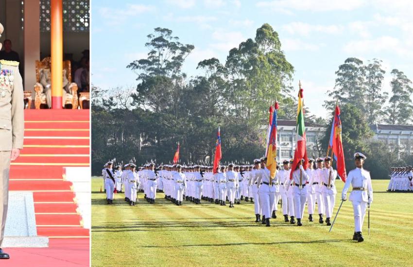 နိုင်ငံတော်စီမံအုပ်ချုပ်ရေးကောင်စီဥက္ကဋ္ဌ တပ်မတော်ကာကွယ်ရေးဦးစီးချုပ် ဗိုလ်ချုပ်မှူးကြီး သတိုးမဟာသရေစည်သူ သတိုးသီရိသုဓမ္မ မင်းအောင်လှိုင် စစ်တက္ကသိုလ် ဗိုလ်လောင်းသင်တန်းအမှတ်စဉ်(၆၆) သင်တန်းဆင်းဂုဏ်ပြုစစ်ရေးပြအခမ်းအနားသို့ တက်ရောက် မိန့်ခွန်းပြောကြား