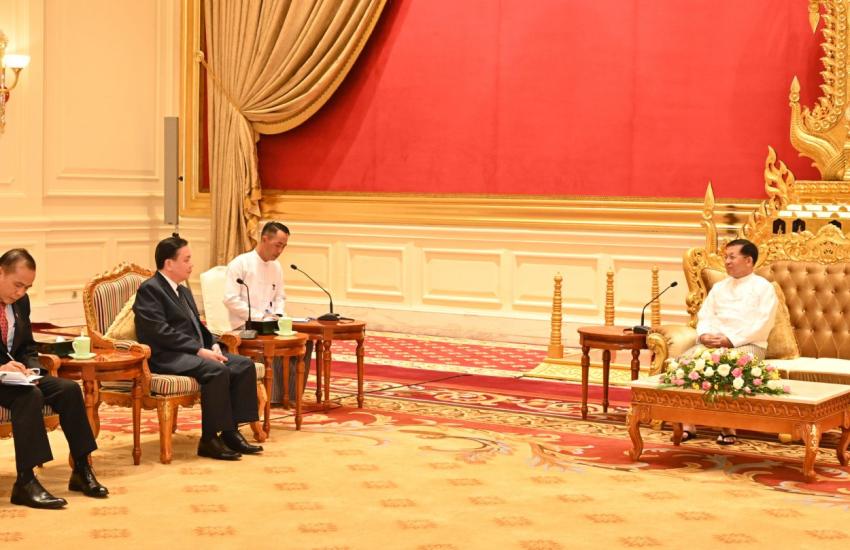 နိုင်ငံတော်စီမံအုပ်ချုပ်ရေးကောင်စီဥက္ကဋ္ဌ နိုင်ငံတော်ဝန်ကြီးချုပ် ဗိုလ်ချုပ်မှူးကြီး မင်းအောင်လှိုင် မြန်မာနိုင်ငံဆိုင်ရာ လာအိုနိုင်ငံ သံအမတ်ကြီးအား လက်ခံတွေ့ဆုံ