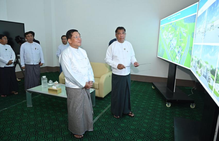 နိုင်ငံတော်စီမံအုပ်ချုပ်ရေးကောင်စီဥက္ကဋ္ဌ နိုင်ငံတော်ဝန်ကြီးချုပ် ဗိုလ်ချုပ်မှူးကြီး မင်းအောင်လှိုင် Naypyitaw State Polytechnic University တည်ဆောက်ပြီးစီးမှုအခြေအနေများအား သွားရောက်ကြည့်ရှုစစ်ဆေး