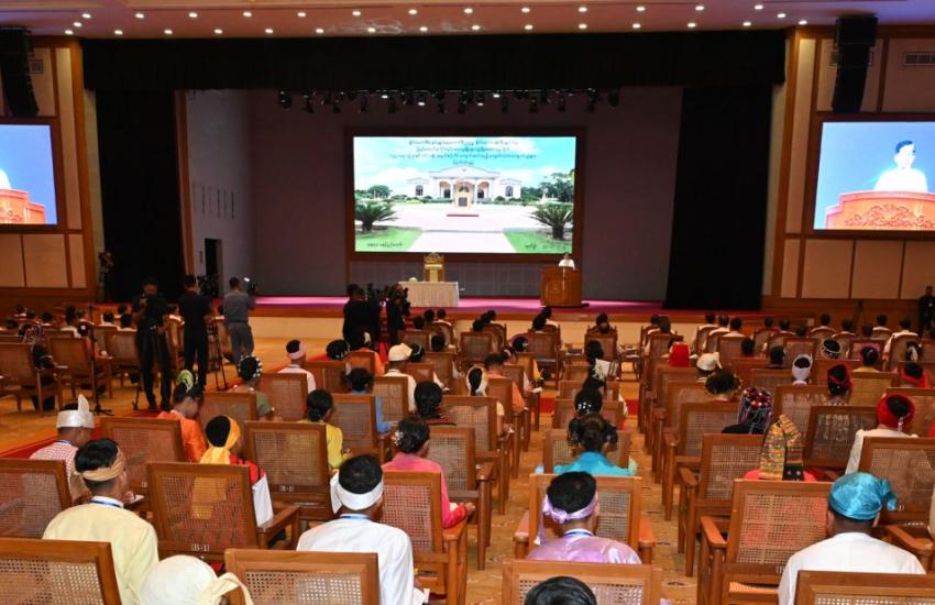 နိုင်ငံတော်စီမံအုပ်ချုပ်ရေးကောင်စီဥက္ကဋ္ဌ နိုင်ငံတော်ဝန်ကြီးချုပ် ဗိုလ်ချုပ်မှူးကြီး မင်းအောင်လှိုင် ပြည်ထောင်စုတိုင်းရင်းသားလူမျိုးများဖွံ့ဖြိုးရေးတက္ကသိုလ်ပညာရေးဘွဲ့ ၅ နှစ်သင်တန်း အမှတ်စဉ် (၆) မှ ကျောင်းသား၊ ကျောင်းသူများကို တွေ့ဆုံအမှာစကားပြောကြား