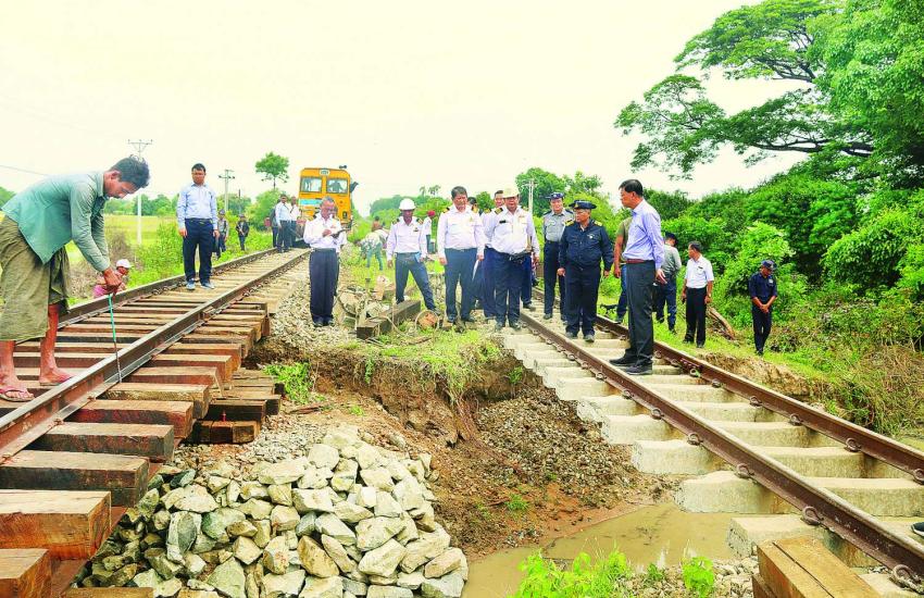 ဒုတိယဝန်ကြီးချုပ်နှင့် ပြည်ထောင်စုဝန်ကြီး ဗိုလ်ချုပ်ကြီး မြထွန်းဦး သဘာဝဘေးအန္တရာယ်ကြောင့် ရထားလမ်းနှင့် တံတားများ ပျက်စီးမှုနှင့် ပြန်လည်ပြုပြင်ဆောင်ရွက်မှုအခြေအနေများအား ကြည့်ရှုစစ်ဆေး