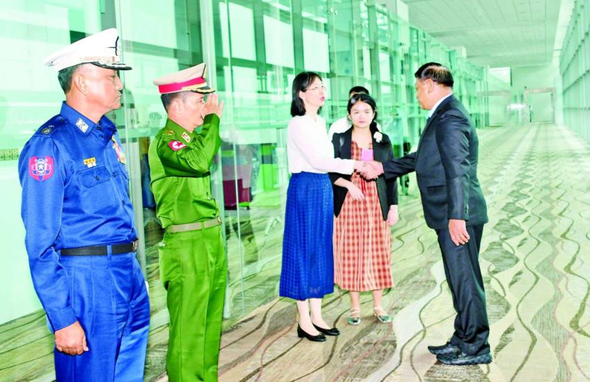 နိုင်ငံတော်စီမံအုပ်ချုပ်ရေးကောင်စီဥက္ကဋ္ဌ နိုင်ငံတော်ဝန်ကြီးချုပ် ဗိုလ်ချုပ်မှူးကြီး မင်းအောင်လှိုင် နေပြည်တော်ကောင်စီနယ်မြေအတွင်း မိုးအဆက်မပြတ်ရွာသွန်းမှုကြောင့် ပျက်စီးမှုများဖြစ်ပေါ်ခဲ့သည့် လမ်းတံတားများ ပြန်လည်ပြုပြင်ဆောင်ရွက်နေမှုနှင့် ရေကြီးရေလျှံမှုဖြစ်ပေါ်ခဲ့မှုအခြေအနေများအား လိုက်လံကြည့်ရှုစစ်ဆေး