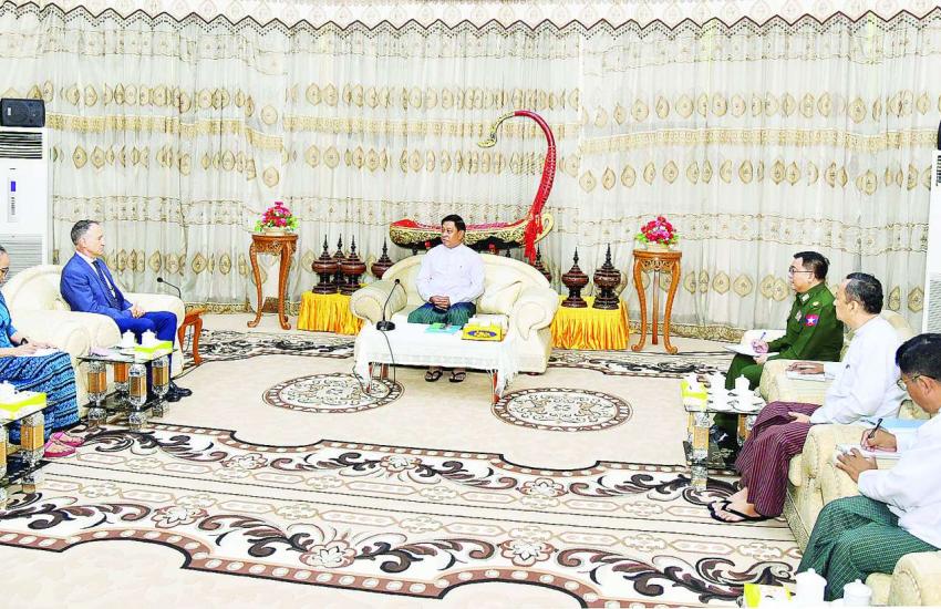 နိုင်ငံတော်စီမံအုပ်ချုပ်ရေးကောင်စီအဖွဲ့ဝင်၊ ဒုတိယဝန်ကြီးချုပ်နှင့် ကာကွယ်ရေးဝန်ကြီးဌာန ပြည်ထောင်စုဝန်ကြီး ဗိုလ်ချုပ်ကြီး တင်အောင်စန်း မြန်မာနိုင်ငံဆိုင်ရာ ကုလသမဂ္ဂယာယီဌာနေညှိနှိုင်းရေးမှူးနှင့် လူသားချင်းစာနာထောက်ထားမှုဆိုင်ရာ ယာယီညှိနှိုင်းရေးမှူးဖြစ်သူ Mr. Marcoluigi Corsi ကို လက်ခံတွေ့ဆုံ