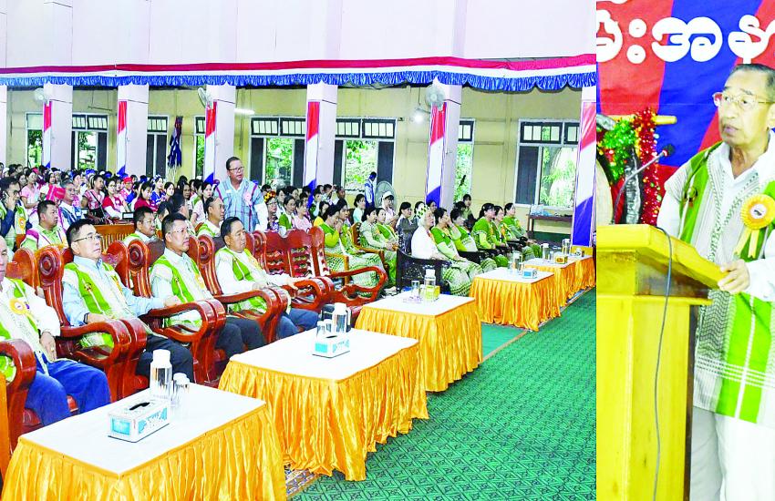 ရန်ကုန်မြို့ တိုင်းရင်းသားကျေးရွာရှိ ပြည်ထောင်စုခန်းမ၌ ကရင်တိုင်းရင်းသားရိုးရာ ဝါခေါင်လချည်ဖြူဖွဲ့မင်္ဂလာအခမ်းအနား ကျင်းပ