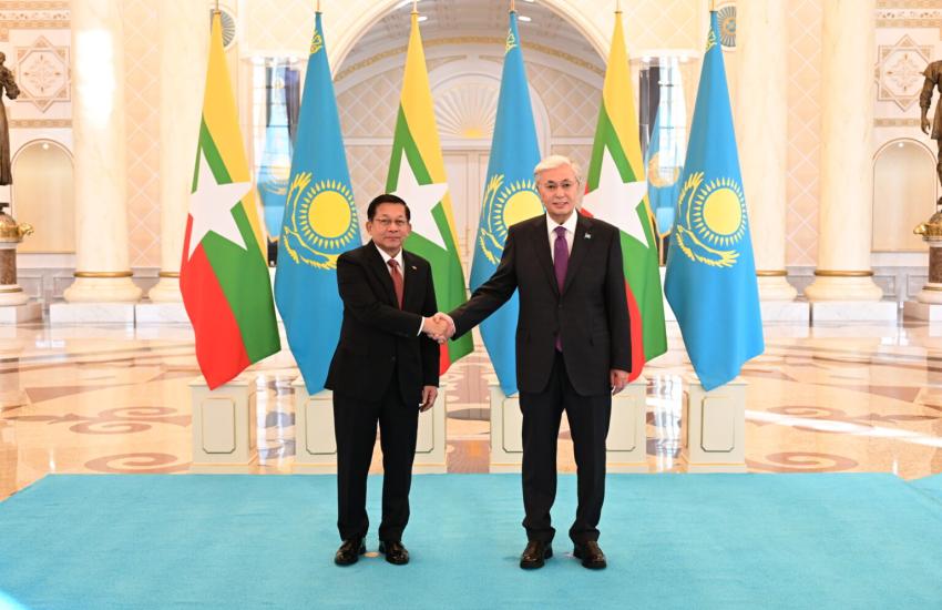 ပြည်ထောင်စုသမ္မတမြန်မာနိုင်ငံတော်ယာယီသမ္မတ နိုင်ငံတော်လုံခြုံရေးနှင့်အေးချမ်းသာယာရေးကော်မရှင်ဥက္ကဋ္ဌ ဗိုလ်ချုပ်မှူးကြီး မင်းအောင်လှိုင် ကာဇက်စတန်သမ္မတနိုင်ငံသမ္မတ H.E. Mr. Kassym-Jomart Tokayev နှင့် တွေ့ဆုံ