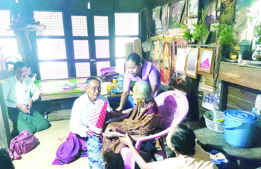နိုင်ငံတော်စီမံအုပ်ချုပ်ရေးကောင်စီအဖွဲ့ဝင် မန်းငြိမ်းမောင် အသက်(၁၀၉)နှစ်ရှိ အဘွားအား အလှူပစ္စည်းများ ပေးအပ်