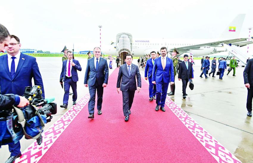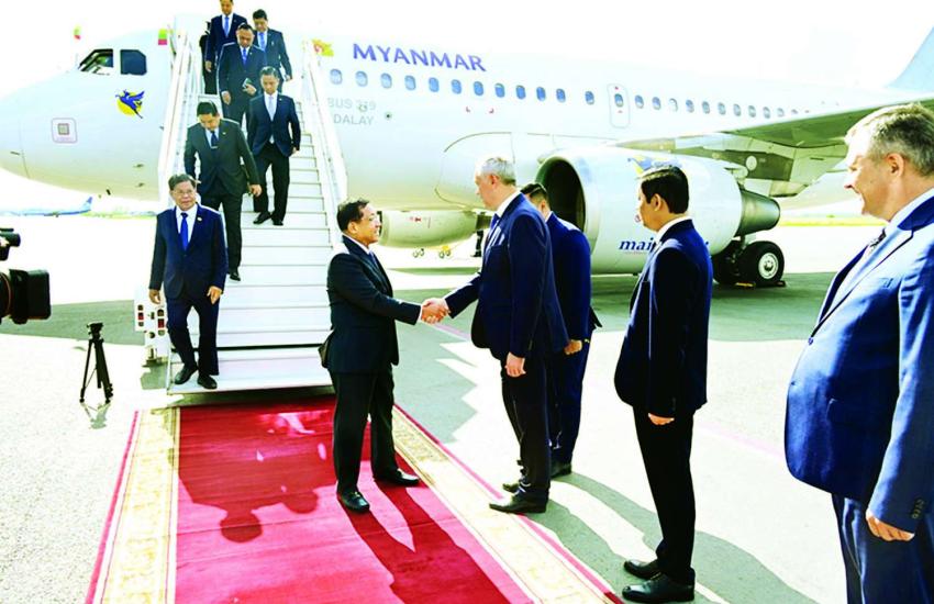 နိုင်ငံတော်စီမံအုပ်ချုပ်ရေးကောင်စီဥက္ကဋ္ဌ နိုင်ငံတော်ဝန်ကြီးချုပ် ဗိုလ်ချုပ်မှူးကြီး မင်းအောင်လှိုင် ဦးဆောင်သည့် မြန်မာအဆင့်မြင့် ကိုယ်စားလှယ်အဖွဲ့ စတုတ္ထအကြိမ် ဥရောပ-အာရှစီးပွားရေးဖိုရမ်(EEF 2025)သို့ တက်ရောက်ရန် ဘယ်လာရုစ်သမ္မတနိုင်ငံသို့ ရောက်ရှိ