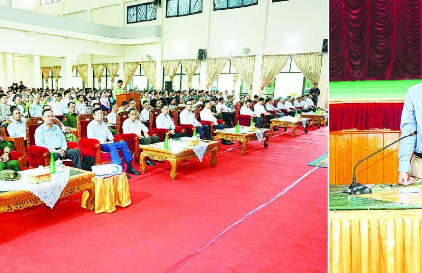နိုင်ငံတော်စီမံအုပ်ချုပ်ရေးကောင်စီဥက္ကဋ္ဌ နိုင်ငံတော်ဝန်ကြီးချုပ် ဗိုလ်ချုပ်မှူးကြီး မင်းအောင်လှိုင် ရှမ်းပြည်နယ် (အရှေ့ပိုင်း) ကျိုင်းတုံမြို့ရှိ ပြည်နယ်အဆင့် ဌာနဆိုင်ရာတာဝန်ရှိသူများ၊ မြို့မိမြို့ဖများနှင့်တွေ့ဆုံ၍ ဒေသဖွံ့ဖြိုးတိုးတက်ရေးဆိုင်ရာများအား ဆွေးနွေးပြောကြား