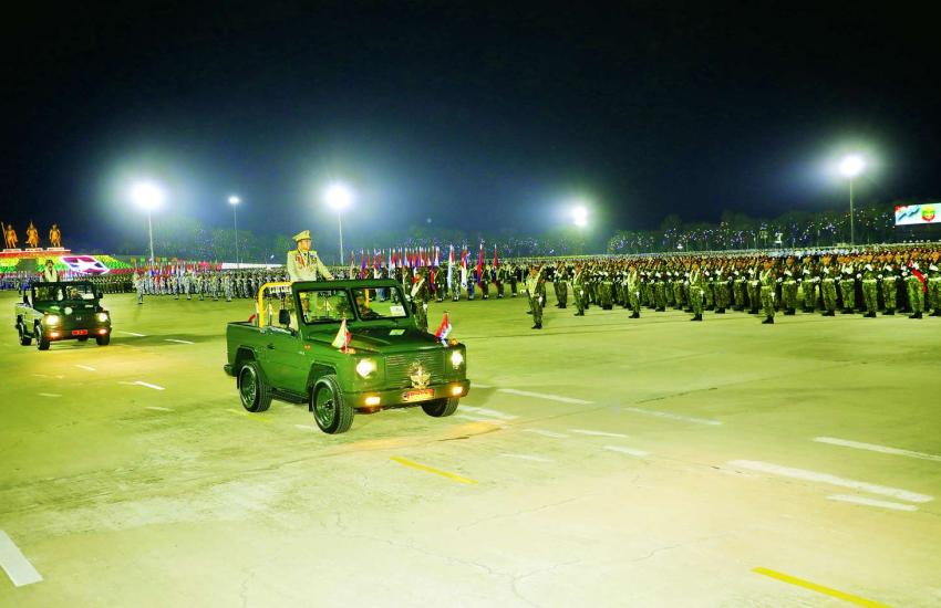 နှစ် (၈ဝ) ပြည့် တပ်မတော်နေ့ စစ်ရေးပြအခမ်းအနား ကျင်းပပြုလုပ်၊ နိုင်ငံတော်စီမံအုပ်ချုပ်ရေးကောင်စီဥက္ကဋ္ဌ တပ်မတော်ကာကွယ်ရေးဦးစီးချုပ် ဗိုလ်ချုပ်မှူးကြီး သတိုးမဟာသရေစည်သူ သတိုးသီရိသုဓမ္မ မင်းအောင်လှိုင် တက်ရောက်မိန့်ခွန်းပြောကြား