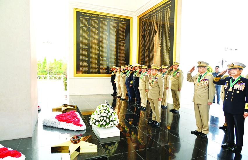 နိုင်ငံတော်စီမံအုပ်ချုပ်ရေးကောင်စီဥက္ကဋ္ဌ တပ်မတော်ကာကွယ်ရေးဦးစီးချုပ် ဗိုလ်ချုပ်မှူးကြီး သတိုးမဟာသရေစည်သူ သတိုးသီရိသုဓမ္မ မင်းအောင်လှိုင်နှင့် တပ်မတော်အရာရှိကြီးများ သူရဲကောင်းဗိမာန်(နေပြည်တော်)၌ ဂုဏ်ပြုပန်းခြင်းချ အလေးပြု