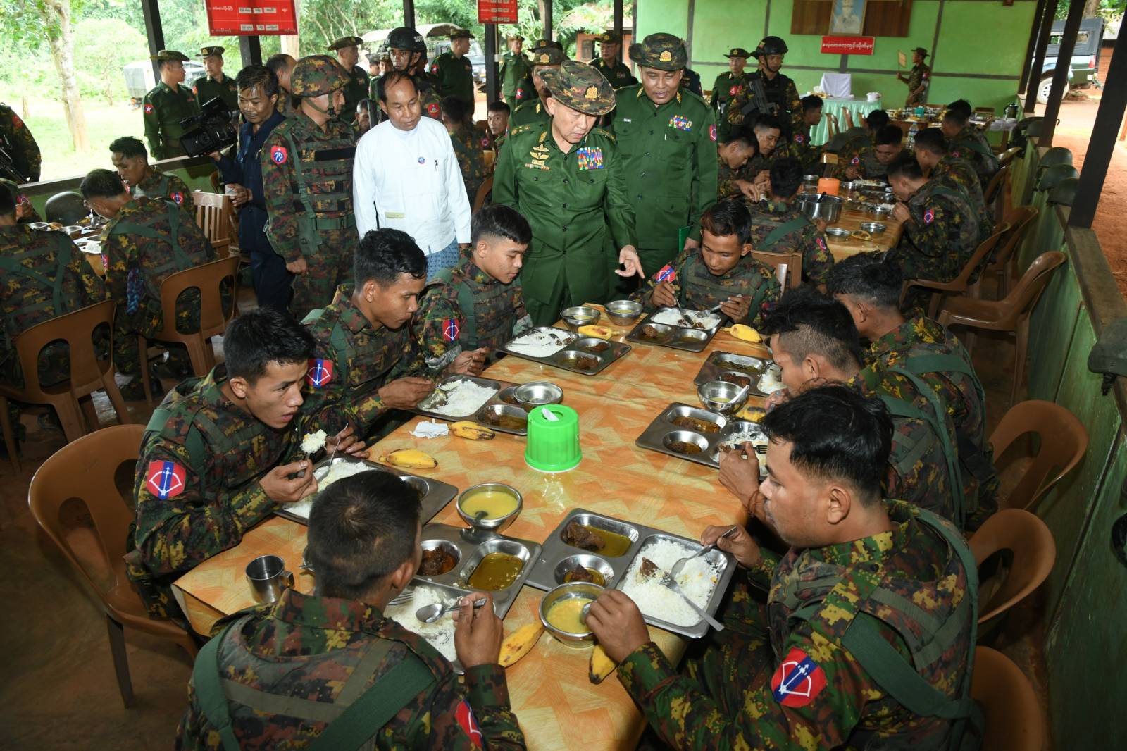 ဆက်လက်၍ နိုင်ငံတော်စီမံအုပ်ချုပ်ရေးကောင်စီဒုတိယဥက္ကဋ္ဌ ဒုတိယတပ်မတော် ကာကွယ်ရေးဦးစီးချုပ် ကာကွယ်ရေးဦးစီးချုပ်(ကြည်း)နှင့် အဖွဲ့ဝင်များသည် ဝန်းသိုတပ်နယ်ရှိ အရာရှိ၊ စစ်သည်၊ ရဲမေများနှင့် မိသားစုဝင်များအား သီးခြားစီသွားရောက် တွေ့ဆုံအားပေးစကားပြောကြားပြီး တင်ပြချက်များအပေါ်လိုအပ်သည်များဖြည့်ဆည်း ဆောင်ရွက်ပေးကာ စားသောက်ဖွယ်ရာများ၊ ထောက်ပံ့ပစ္စည်းများနှင့် ချီးမြှင့်ငွေများပေးအပ်ခဲ့ကြောင်း သတင်းရရှိသည်။