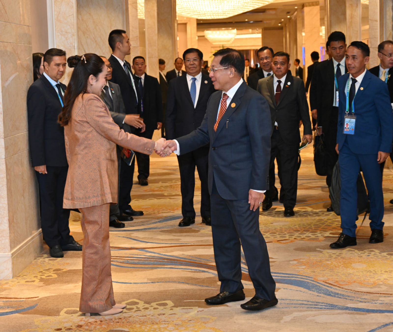 နိုင်ငံတော်စီမံအုပ်ချုပ်ရေးကောင်စီဥက္ကဋ္ဌ နိုင်ငံတော်ဝန်ကြီးချုပ် ဗိုလ်ချုပ်မှူးကြီး မင်းအောင်လှိုင် တရုတ်ပြည်သူ့သမ္မတနိုင်ငံ၊ ကူမင်းမြို့၌ ကျင်းပပြုလုပ်သည့် ထိပ်သီးအစည်းအဝေး များသို့ တက်ရောက်လာသည့် ထိုင်းနိုင်ငံဝန်ကြီးချုပ် H.E. Ms. Paetongtarn Shinawatra တွေ့ဆုံဆွေးနွေး