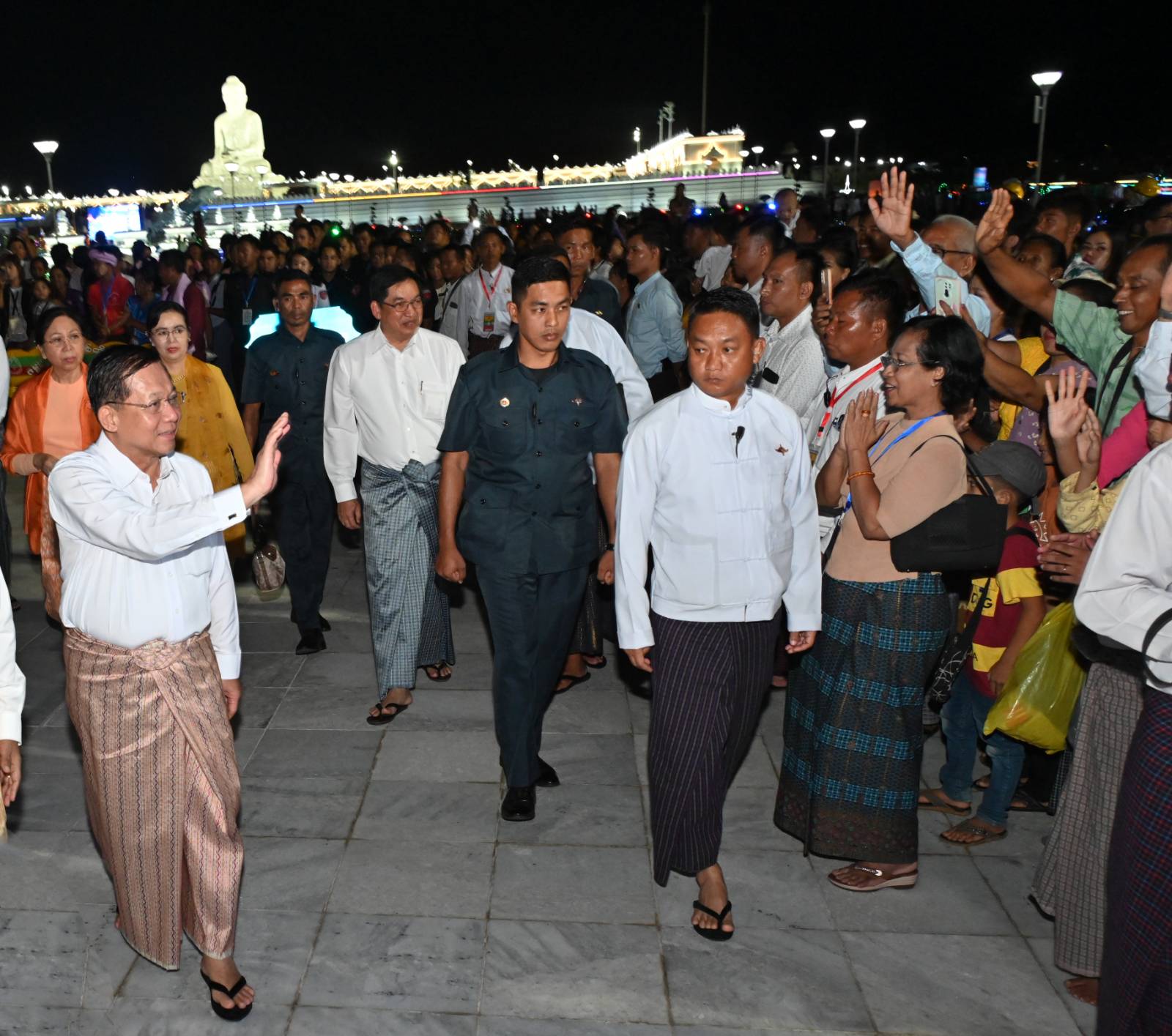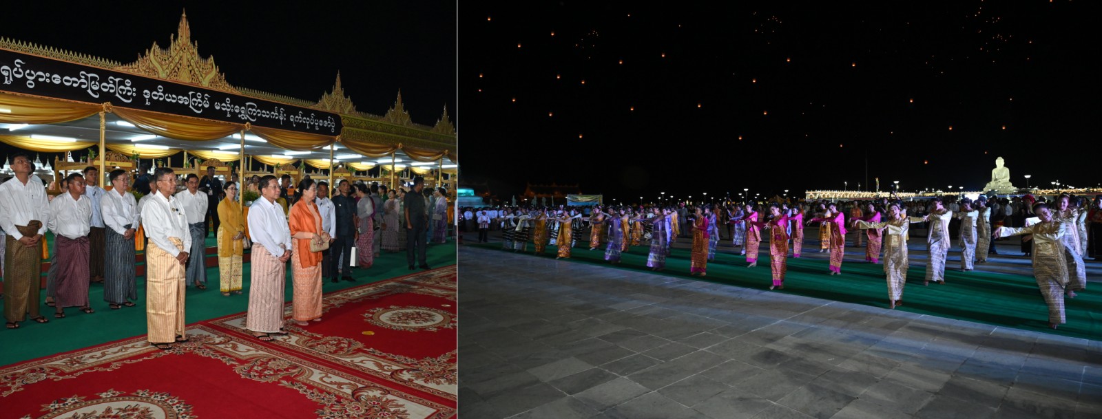 နိုင်ငံတော်စီမံအုပ်ချုပ်ရေးကောင်စီဥက္ကဋ္ဌ နိုင်ငံတော်ဝန်ကြီးချုပ် ဗိုလ်ချုပ်မှူးကြီး မင်းအောင်လှိုင်နှင့် ဇနီး ဒေါ်ကြူကြူလှ မာရဝိဇယဗုဒ္ဓရုပ်ပွားတော်မြတ်ကြီးအား ဒုတိယအကြိမ် မသိုးရွှေကြာသင်္ကန်းတော် ရက်လုပ်ပူဇော်ပွဲ ဖွင့်ပွဲအခမ်းအနားသို့ တက်ရောက်ပူဇော်