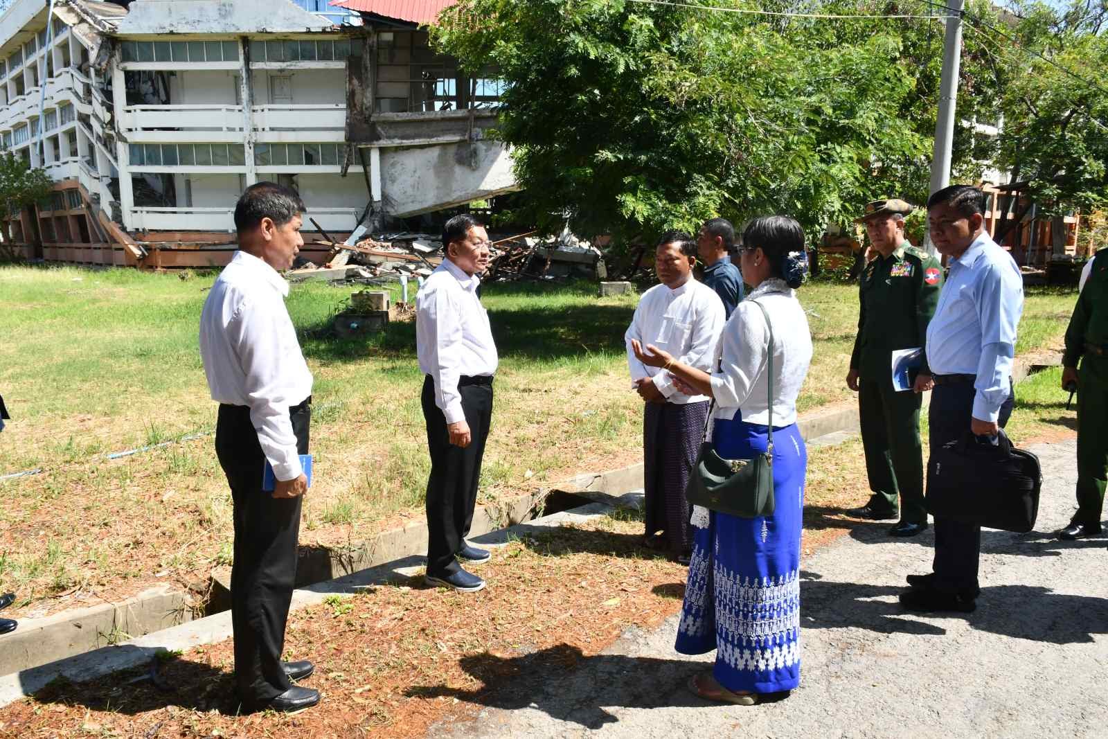 ၎င်းနောက် နိုင်ငံတော်စီမံအုပ်ချုပ်ရေးကောင်စီဥက္ကဋ္ဌ နိုင်ငံတော်ဝန်ကြီးချုပ်နှင့် အဖွဲ့ဝင်များသည် ငလျင်ဒဏ်ကြောင့် ပြိုကျပျက်စီးသွားသော စာသင်ဆောင်များ၊ အားကစားခန်းမနေရာ၊ ကျောင်းသားအိပ်ဆောင်နှင့် ဝန်ထမ်းအိမ်ရာများအား သွားရောက်ကြည့်ရှုစစ်ဆေးပြီး တာဝန်ရှိသူများ၏ တင်ပြချက်များအပေါ် အဆောက်အဦအပျက်အစီးများ ရှင်းလင်းဖယ်ရှား၍ အမြန်ဆုံးပြန်လည်ပြုပြင်နိုင်ရေး၊ ကျောင်းအမြန်ဆုံး ပြန်လည်ဖွင့်လှစ်နိုင်ရေးတို့အား မှာကြားပြီး လိုအပ်သည်များ ဖြည့်ဆည်းဆောင်ရွက်ပေးခဲ့သည်။