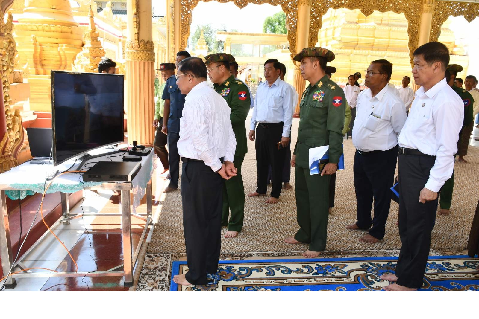 ၎င်းနောက် နိုင်ငံတော်စီမံအုပ်ချုပ်ရေးကောင်စီဥက္ကဋ္ဌ နိုင်ငံတော်ဝန်ကြီးချုပ်သည် ငလျင်ဒဏ်ကြောင့် ထိခိုက်ပျက်စီးသွားသော ကျောက်သေတ္တာစေတီ၏ မှတ်တမ်းဓာတ်ပုံများနှင့် ရွှေမုဋ္ဌောစေတီတော်ရှိ ငလျင်ဒဏ်ကြောင့်ထိခိုက်ပျက်စီးသော ဓမ္မာရုံအား ကြည့်ရှုစစ်ဆေးပြီး တာဝန်ရှိသူများအား အပျက်အစီးများ ဖယ်ရှားရှင်းလင်းပြီး ပြန်လည်တည်ဆောက်ရေး လုပ်ငန်းများအမြန်ဆုံး စနစ်တကျပြန်လည်တည်ဆောက်သွားရန် လမ်းညွှန်မှာကြားပြီး ငလျင်ဒဏ်ကြောင့် ထိခိုက်သွားပြီး ပြန်လည်ပြင်ဆင်ထားသော ဆင်းတုတော်များအား ကြည့်ရှုစစ်ဆေးသည်။