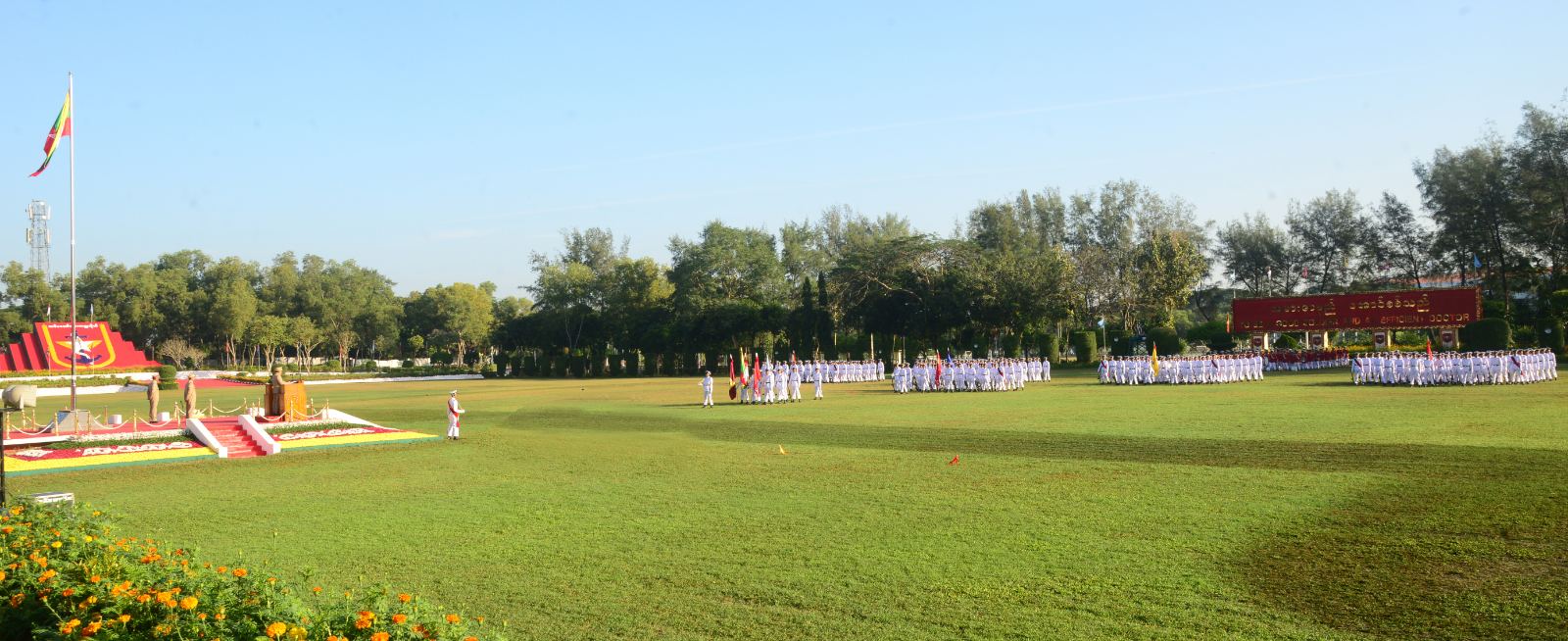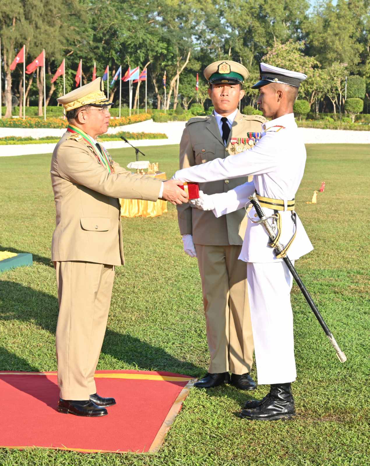 နိုင်ငံတော်စီမံအုပ်ချုပ်ရေးကောင်စီဥက္ကဋ္ဌ တပ်မတော်ကာကွယ်ရေးဦးစီးချုပ် ဗိုလ်ချုပ်မှူးကြီး သတိုးမဟာသရေစည်သူ သတိုးသီရိသုဓမ္မ မင်းအောင်လှိုင် တပ်မတော်ဆေးတက္ကသိုလ် ဗိုလ်လောင်းသင်တန်းအမှတ်စဉ်(၂၅) သင်တန်းဆင်း ဂုဏ်ပြုစစ်ရေးပြအခမ်းအနားသို့ တက်ရောက်မိန့်ခွန်းပြောကြား