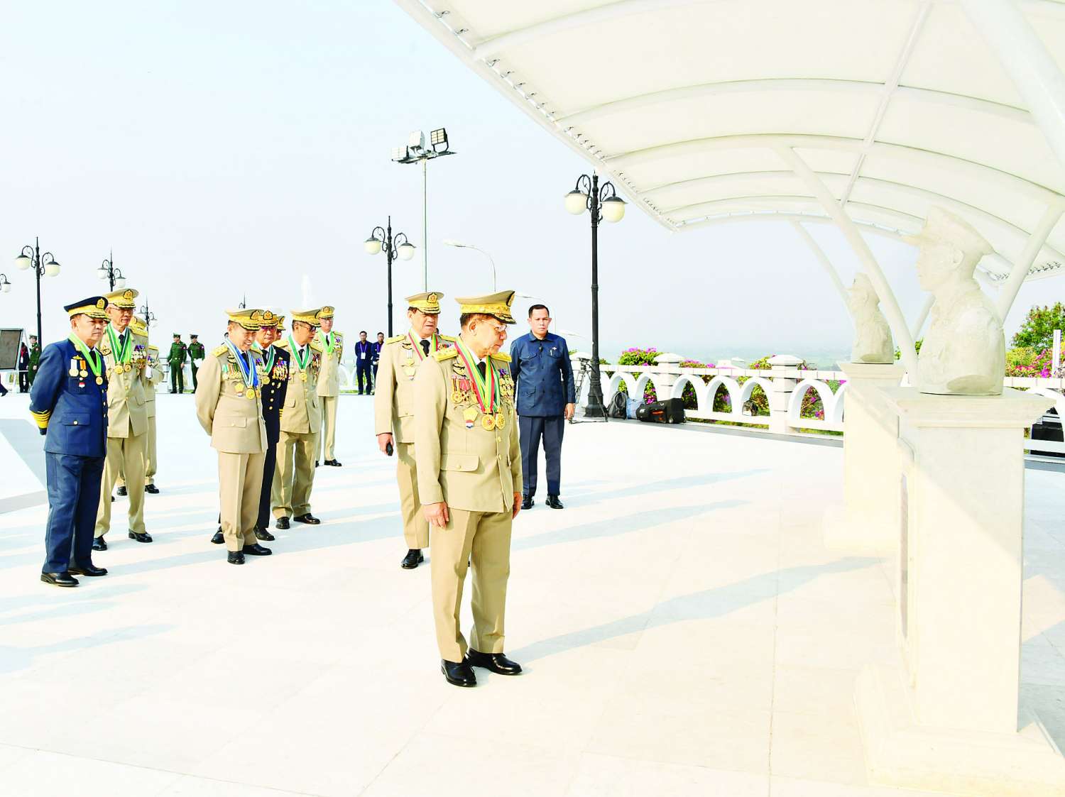 နိုင်ငံတော်စီမံအုပ်ချုပ်ရေးကောင်စီဥက္ကဋ္ဌ တပ်မတော်ကာကွယ်ရေးဦးစီးချုပ် ဗိုလ်ချုပ်မှူးကြီး သတိုးမဟာသရေစည်သူ သတိုးသီရိသုဓမ္မ မင်းအောင်လှိုင်နှင့် တပ်မတော်အရာရှိကြီးများ သူရဲကောင်းဗိမာန်(နေပြည်တော်)၌ ဂုဏ်ပြုပန်းခြင်းချ အလေးပြု