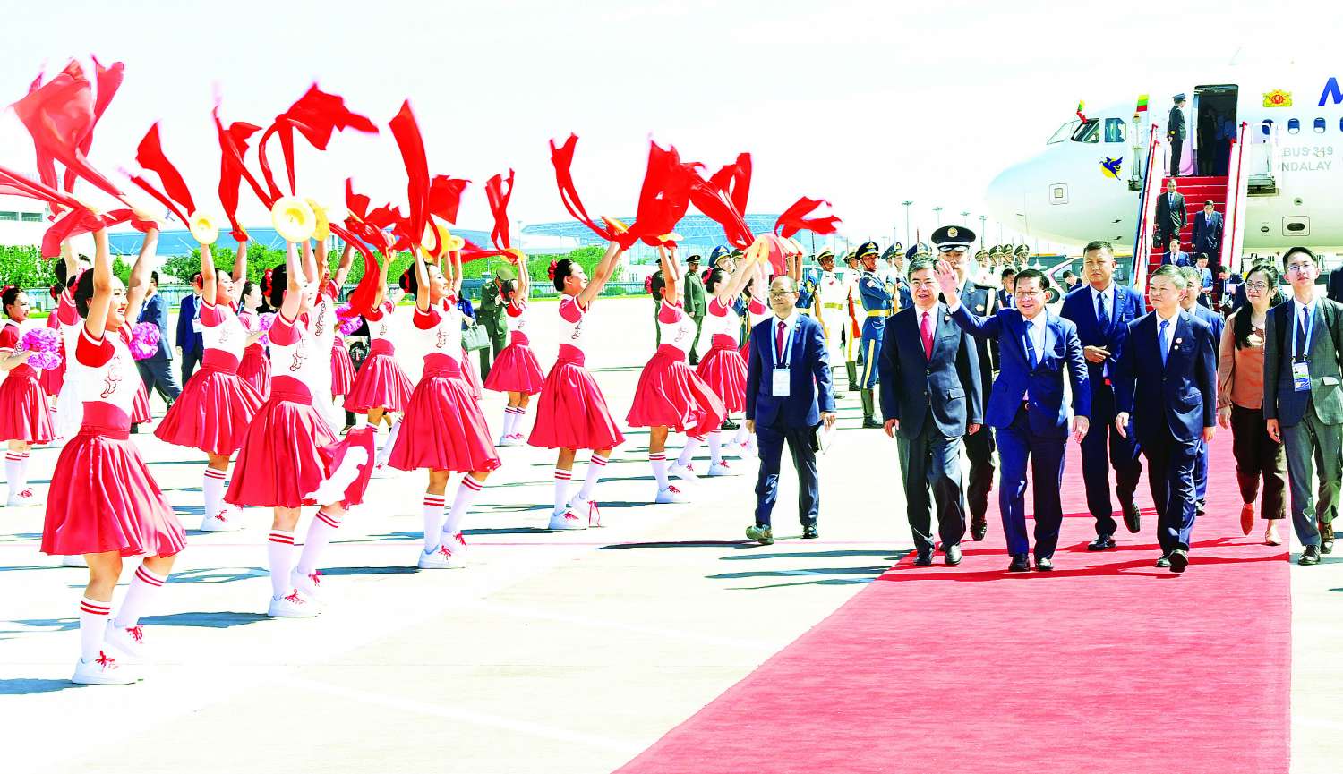 တရုတ်ပြည်သူ့သမ္မတနိုင်ငံသို့ ရောက်ရှိလာသော နိုင်ငံတော်လုံခြုံရေးနှင့်အေးချမ်းသာယာရေးကော်မရှင်ဥက္ကဋ္ဌ ဗိုလ်ချုပ်မှူးကြီး မင်းအောင်လှိုင်အား တာဝန်ရှိသူများက ကြိုဆိုခဲ့ကြပါသည်။