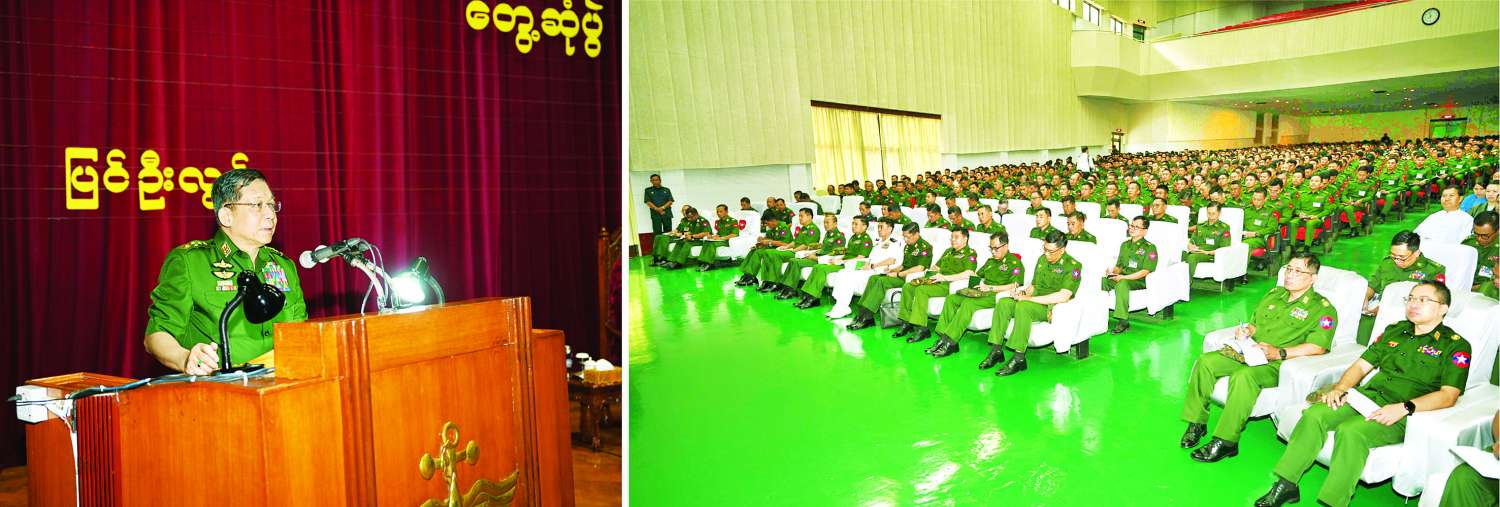 နည်းပြများအနေဖြင့် မိမိတို့တတ်မြောက်သင်ကြားထားသည့်၊ စာပေပညာ၊ စစ်ပညာများကို ဖြတ်သန်းခဲ့ရသည့် အတွေ့အကြုံများနှင့် ပေါင်းစပ်ချိန်ထိုး၍ စနစ်တကျ သင်ကြားလေ့ကျင့်ပေးပြီး စိတ်ဓာတ်ခိုင်မာကောင်းမွန်သည့် နိုင်ငံတော်နှင့် တပ်မတော်က အားထားရသည့်၊ ပြည်သူက အားကိုးရသည့် အနာဂတ်ခေါင်းဆောင်များကို မွေးထုတ်ပေးနိုင်ရမည်ဖြစ်သကဲ့သို့ သင်တန်းသား အရာရှိငယ်များ၊ ဗိုလ်လောင်းများအနေဖြင့်လည်း စိတ်ဓာတ်ခံယူချက်ကောင်းစွာဖြင့် သင်ယူလေ့လာ၍ နိုင်ငံတော်နှင့် တပ်မတော်ကို ပြန်လည်အကျိုးပြုနိုင်ရမည်ဖြစ်ကြောင်း နိုင်ငံတော်စီမံအုပ်ချုပ်ရေးကောင်စီဥက္ကဋ္ဌ တပ်မတော်ကာကွယ်ရေး ဦးစီးချုပ် ဗိုလ်ချုပ်မှူးကြီး မင်းအောင်လှိုင်က ယနေ့နံနက်ပိုင်းတွင် စစ်တက္ကသိုလ်မှ နည်းပြအရာရှိကြီးများ၊ ကထိကအရာရှိကြီးများ၊ ဆရာကြီး၊ ဆရာမကြီးများ၊ သန္ဓေအရာရှိများ၊ သင်တန်းသား၊ သင်တန်းသူများနှင့် ဗိုလ်လောင်းများအား စစ်တက္ကသိုလ်၊ ဘွဲ့နှင်းသဘင်ခန်းမ၌ တွေ့ဆုံအမှာစကားပြောကြားစဉ် ထည့်သွင်းပြောကြားသည်။