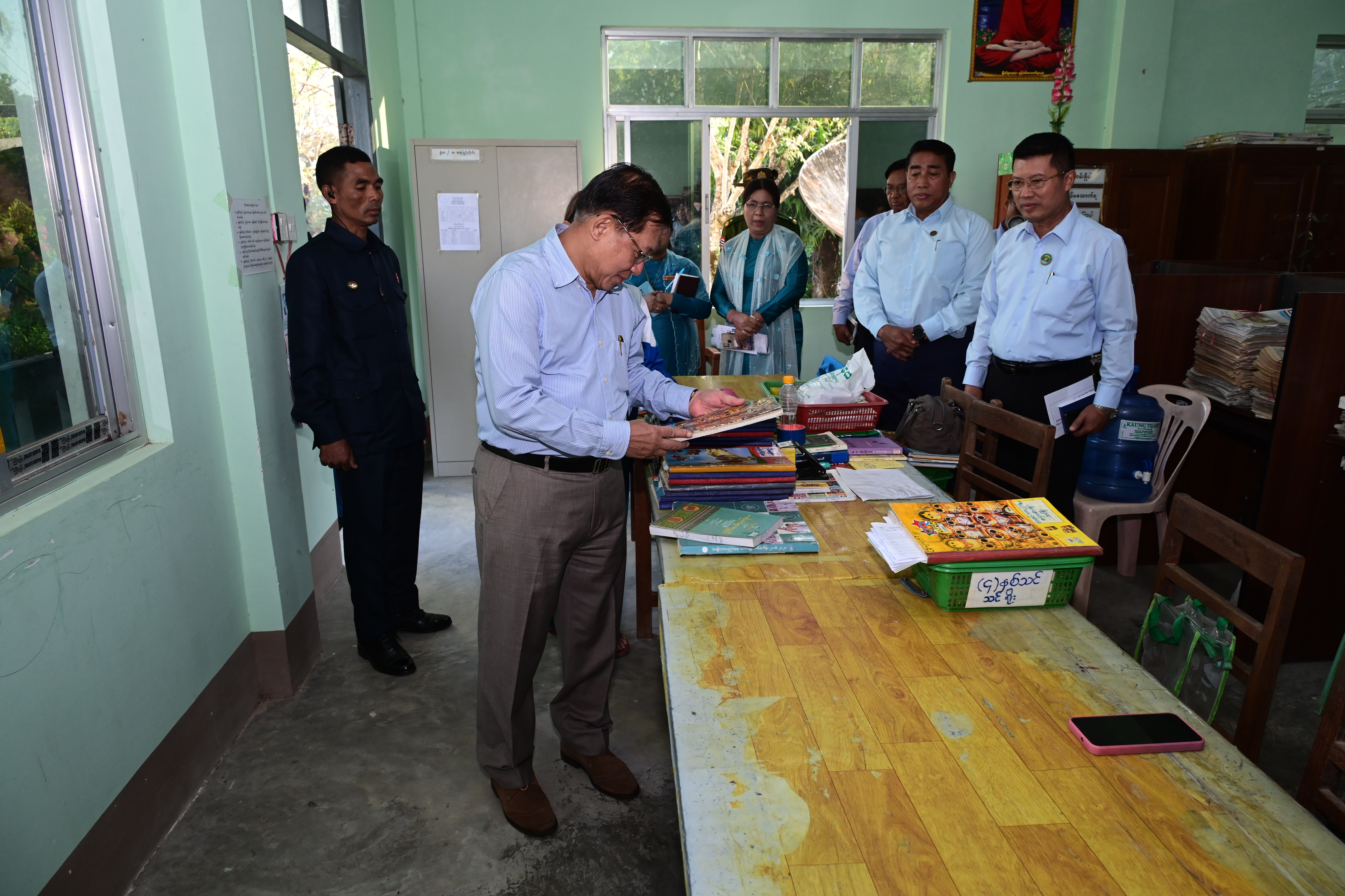 ယင်းနောက် နိုင်ငံတော်ယာယီသမ္မတ နိုင်ငံတော်လုံခြုံရေးနှင့်အေးချမ်းသာယာရေးကော်မရှင်ဥက္ကဋ္ဌနှင့် အဖွဲ့ဝင်များသည် ကောလိပ်စာကြည့်တိုက်သို့ ရောက်ရှိစစ်ဆေးပြီး တာဝန်ရှိသူများ၏တင်ပြချက်များအပေါ် စာကြည့်တိုက်အတွင်း စာအုပ်စာပေများ အမျိုးအစားစုံလင်စွာ ဖြည့်တင်းထားရှိရန်လိုကြောင်း၊ အထူးသဖြင့် သင်ကြားရေး အထောက်အကူပြု စာအုပ်များထားရှိပါက သင်တန်းသားများအတွက် ပိုမိုအထောက်အကူဖြစ်စေမည်ဖြစ်ကြောင်း၊ စာအုပ်စင်များ၊ ဗီရိုများ စနစ်တကျဖြစ်ရန်နှင့် စာအုပ်စာပေများကိုလည်း စနစ်တကျထိန်းသိမ်းကိုင်တွယ်အသုံးပြုကြရန်လိုကြောင်းနှင့် အခြားလိုအပ်သည်များကို လမ်းညွှန်မှာကြားသည်။