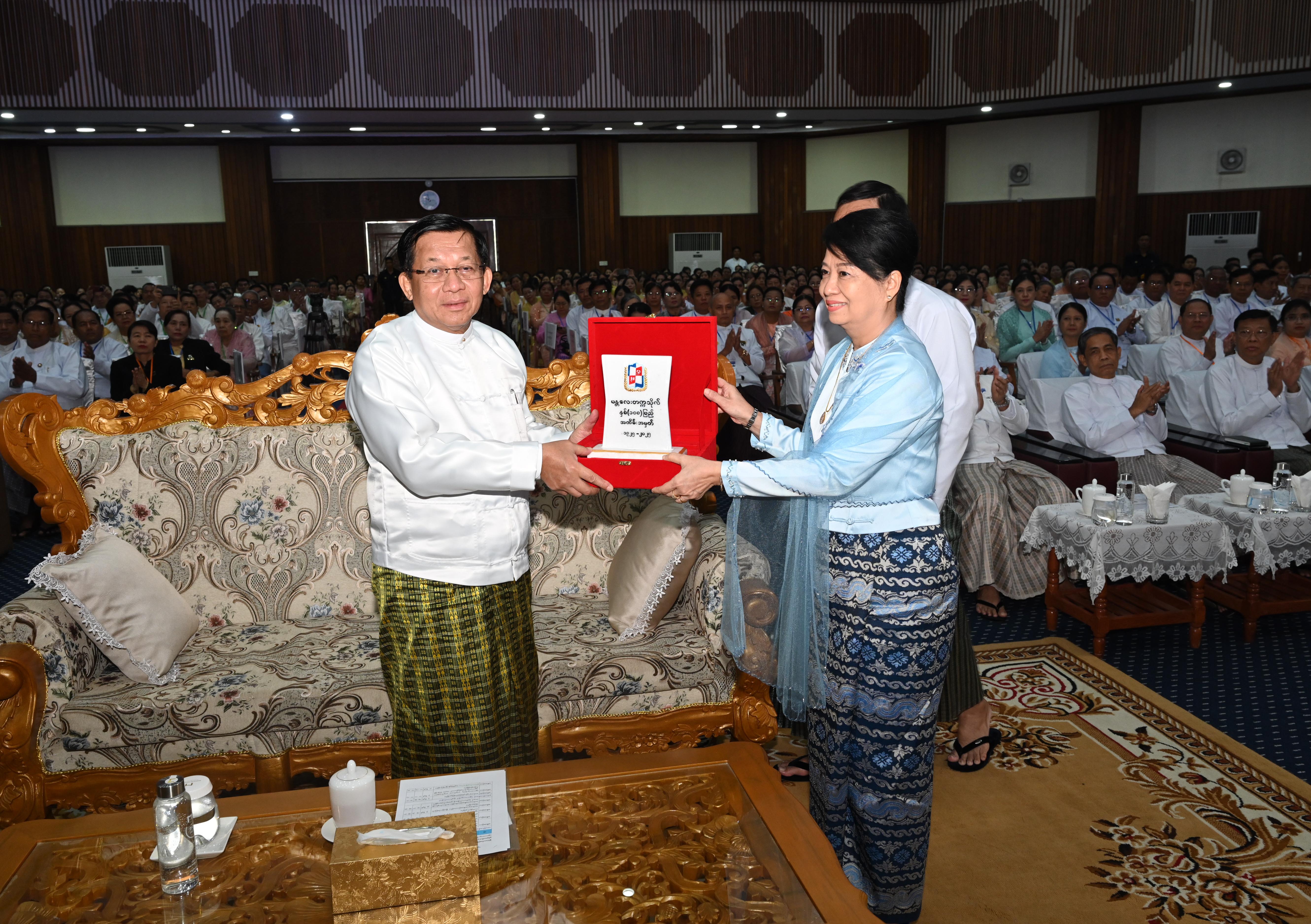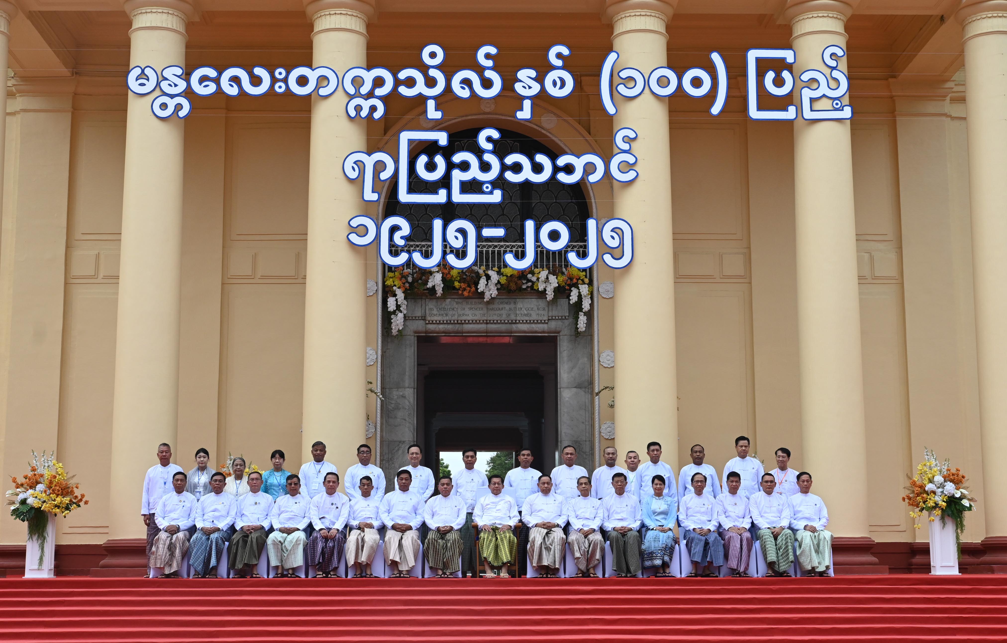 ပြည်ထောင်စုသမ္မတမြန်မာနိုင်ငံတော်ယာယီသမ္မတ နိုင်ငံတော်လုံခြုံရေးနှင့်အေးချမ်းသာယာရေးကော်မရှင်ဥက္ကဋ္ဌ ဗိုလ်ချုပ်မှူးကြီး မင်းအောင်လှိုင် မန္တလေးတက္ကသိုလ် နှစ် (၁၀၀)ပြည့် ရာပြည့်သဘင် အထိမ်းအမှတ် ဖွင့်ပွဲအခမ်းအနားသို့ တက်ရောက်ချီးမြှင့်