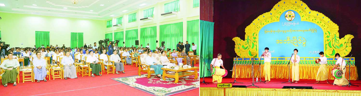 ပြည်ထောင်စုသမ္မတမြန်မာနိုင်ငံတော်ယာယီသမ္မတ နိုင်ငံတော်လုံခြုံရေးနှင့်အေးချမ်းသာယာရေးကော်မရှင်ဥက္ကဋ္ဌ ဗိုလ်ချုပ်မှူးကြီး မင်းအောင်လှိုင်နှင့် ဇနီးဒေါ်ကြူကြူလှ (၂၆)ကြိမ်မြောက် မြန်မာ့ရိုးရာယဉ်ကျေးမှု အဆို၊ အက၊ အရေး၊ အတီးပြိုင်ပွဲ ကျင်းပနေမှုများကို တက်ရောက်ကြည့်ရှုအားပေး