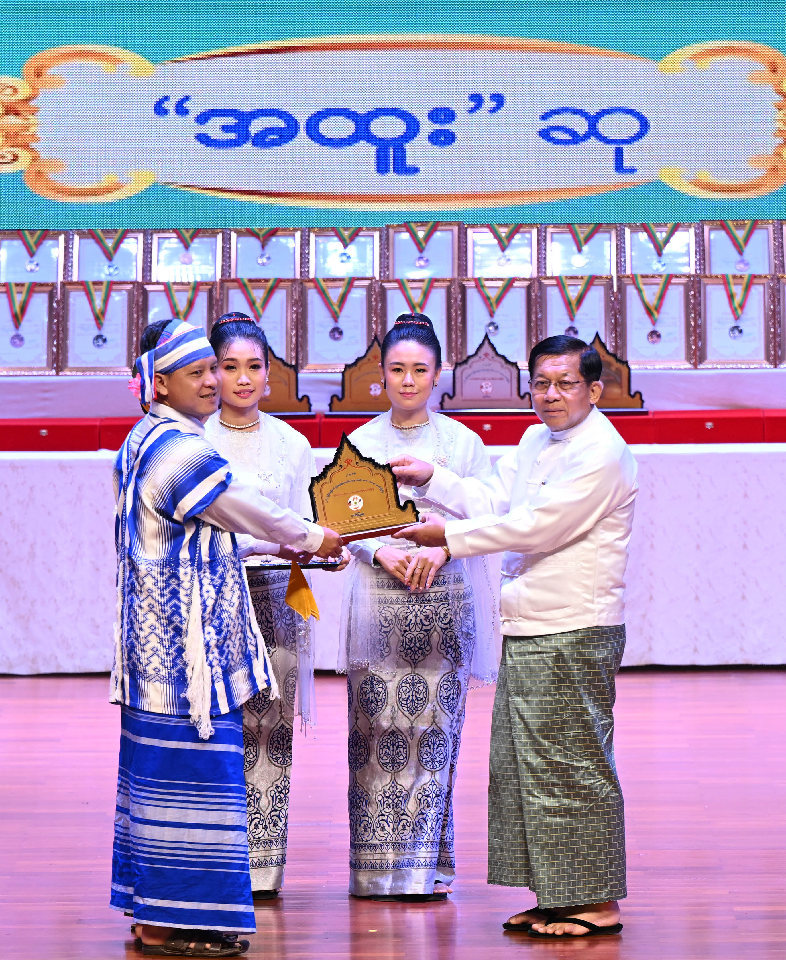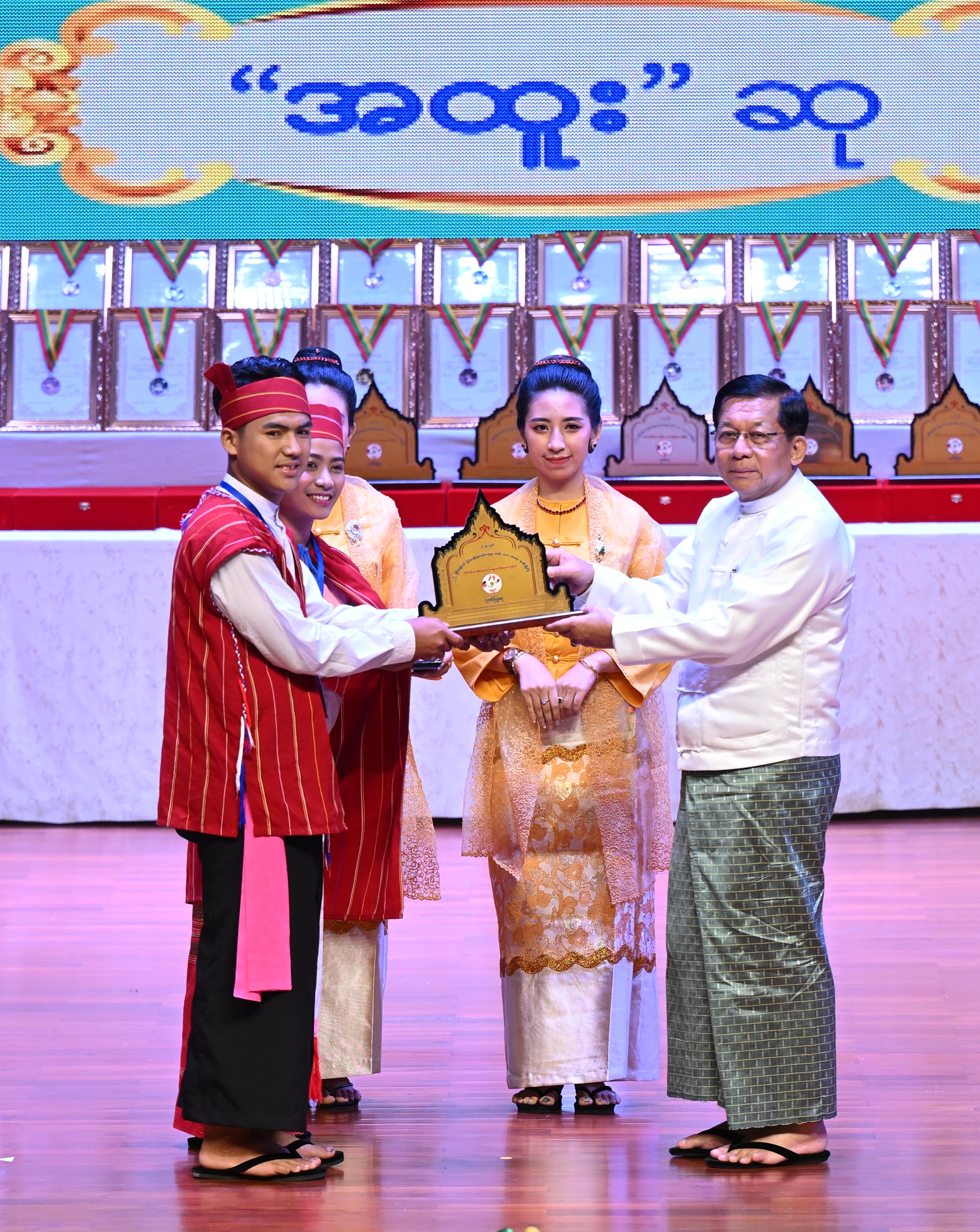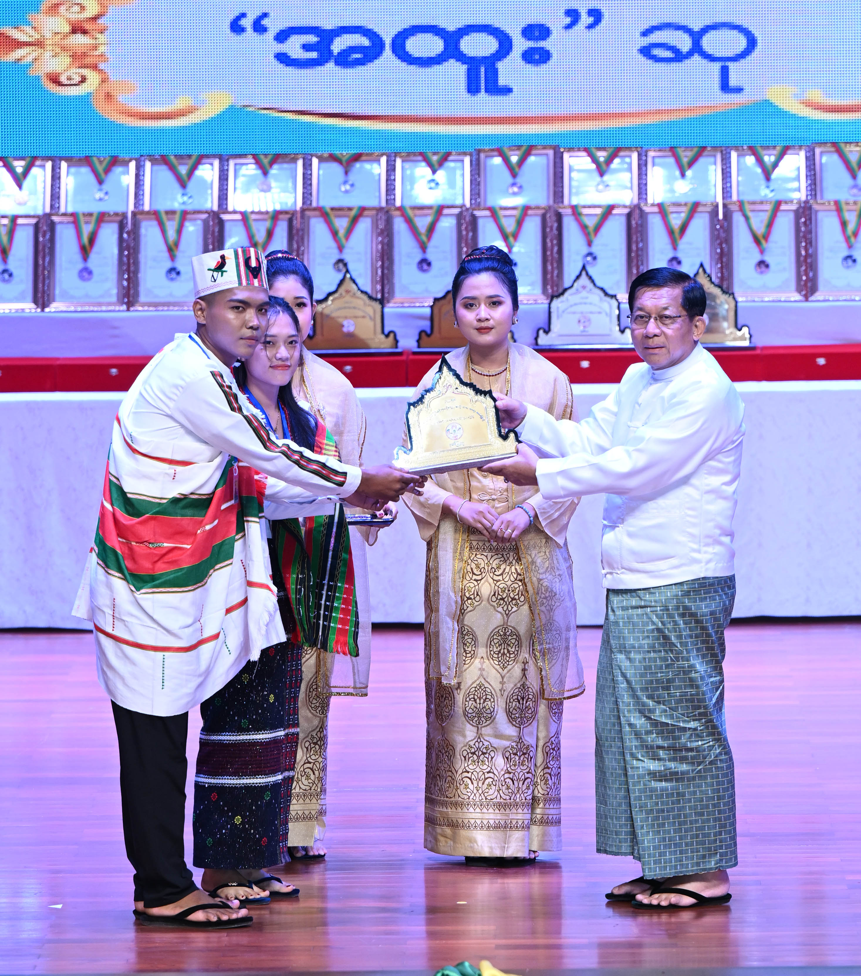 ပြည်ထောင်စုသမ္မတမြန်မာနိုင်ငံတော်ယာယီသမ္မတ နိုင်ငံတော်လုံခြုံရေးနှင့်အေးချမ်းသာယာရေးကော်မရှင်ဥက္ကဋ္ဌ ဗိုလ်ချုပ်မှူးကြီး မင်းအောင်လှိုင် (၂၆)ကြိမ်မြောက် မြန်မာ့ရိုးရာယဉ်ကျေးမှု အဆို၊ အက၊ အရေး၊ အတီးပြိုင်ပွဲ ဆုချီးမြှင့်ပွဲ အခမ်းအနားသို့ တက်ရောက်အမှာစကားပြောကြား
