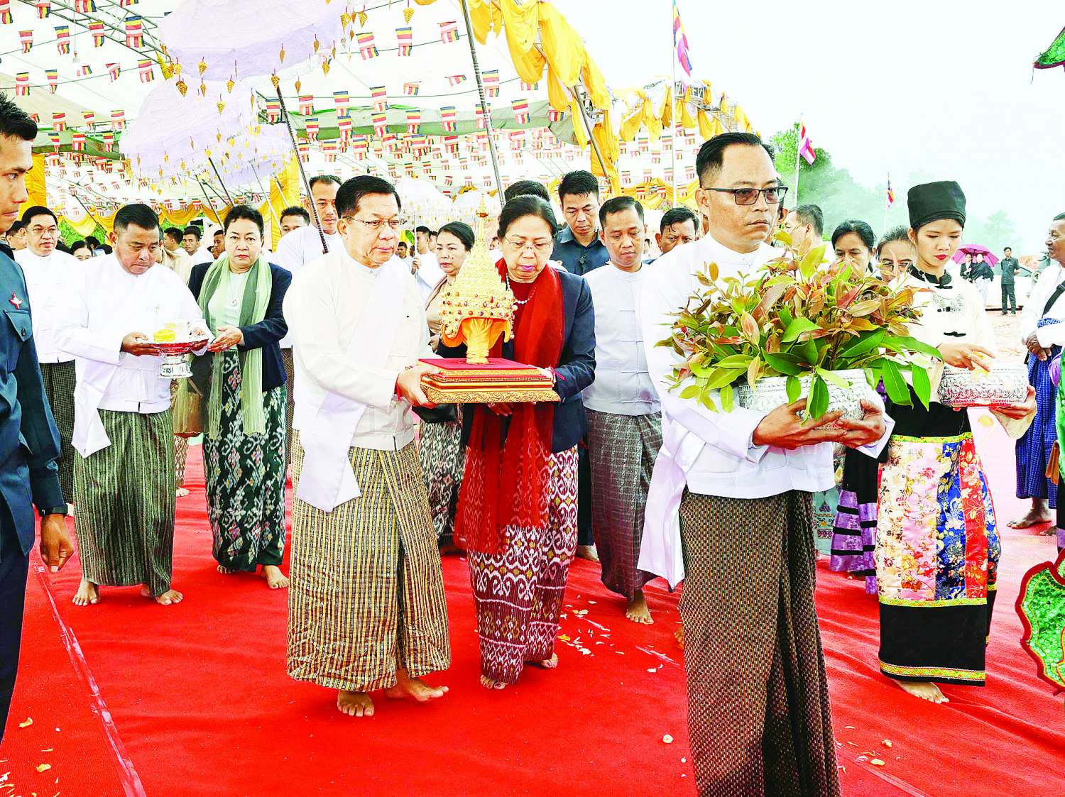 အဆိုပါ မဟာမင်္ဂလာအခမ်းအနားသို့ နိုင်ငံတော်စီမံအုပ်ချုပ်ရေးကောင်စီဥက္ကဋ္ဌ နိုင်ငံတော်ဝန်ကြီးချုပ် ဗိုလ်ချုပ်မှူးကြီး မင်းအောင်လှိုင်နှင့် ဇနီး ဒေါ်ကြူကြူလှ၊ ကောင်စီတွဲဖက်အတွင်းရေးမှူး ဗိုလ်ချုပ်ကြီး ရဲဝင်းဦးနှင့်ဇနီး၊ ကောင်စီဝင်များနှင့် ဇနီးများ၊ ပြည်ထောင်စုဝန်ကြီးများ၊ ရှမ်းပြည်နယ် ဝန်ကြီးချုပ်နှင့်ဇနီး၊ ကာကွယ်ရေးဦးစီးချုပ်ရုံးမှ အဆင့်မြင့်တပ်မတော်အရာရှိကြီးများနှင့် ဇနီးများ၊ တြိဂံဒေသတိုင်း စစ်ဌာနချုပ်တိုင်းမှူး၊ ဖိတ်ကြားထားသည့် ဧည့်သည်တော်များ၊ အရာရှိ၊ စစ်သည်၊ မိသားစု များ၊ ဝတ်အသင်းအဖွဲ့များနှင့် ဒေသခံတိုင်းရင်းသား ပြည်သူများ တက်ရောက်ကြသည်။