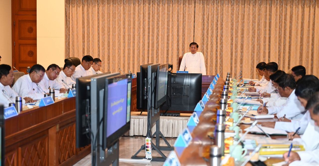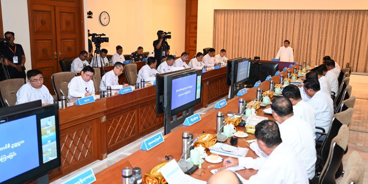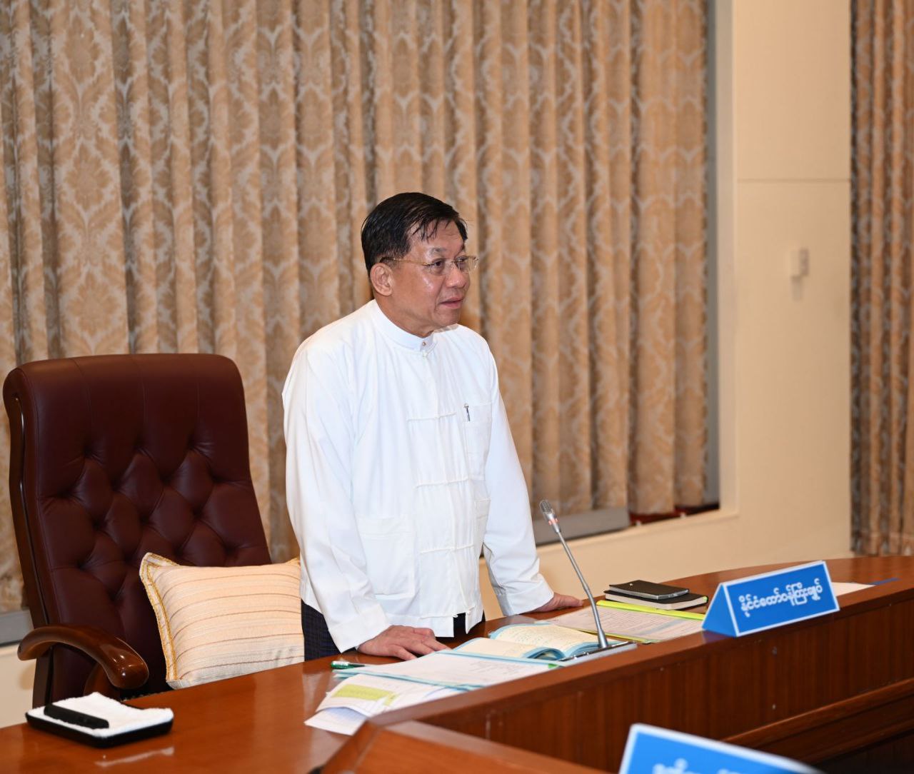 သဘာဝဘေးအန္တရာယ်စီမံခန့်ခွဲမှုဆိုင်ရာ အစည်းအဝေးကို ယနေ့မွန်းလွဲပိုင်းတွင် နိုင်ငံတော်စီမံအုပ်ချုပ်ရေးကောင်စီဥက္ကဋ္ဌရုံး၊ အစည်းအဝေးခန်းမ၌ ကျင်းပပြုလုပ်ရာ နိုင်ငံတော်စီမံအုပ်ချုပ်ရေးကောင်စီဥက္ကဋ္ဌ နိုင်ငံတော်ဝန်ကြီးချုပ် ဗိုလ်ချုပ်မှူးကြီး မင်းအောင်လှိုင် တက်ရောက်ဆွေးနွေး၍ လိုအပ်သည်များ မှာကြားသည်။